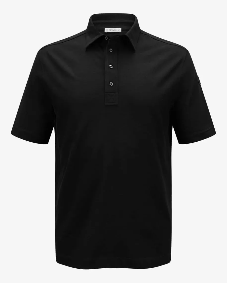 Poloshirt für Herren von Moncler in Schwarz. Dank der angenehmen Baumwoll-Qualität präsentiert sich das Modell als legerer Begleiter für sportive Looks,während der Polo-Kragen und die verkürzte Knopfleiste diesen weiterunterstreichen.