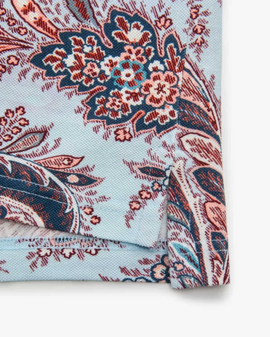 Poloshirt für Herren von Etro in Hellblau und Bunt. Dank der leichten Baumwoll-Qualität präsentiert sich das Modell als angenehmer Begleiter für sportiveLooks, während das labeltypische Paisley-Muster das Modell zu einem echtenHingucker avancieren lässt.