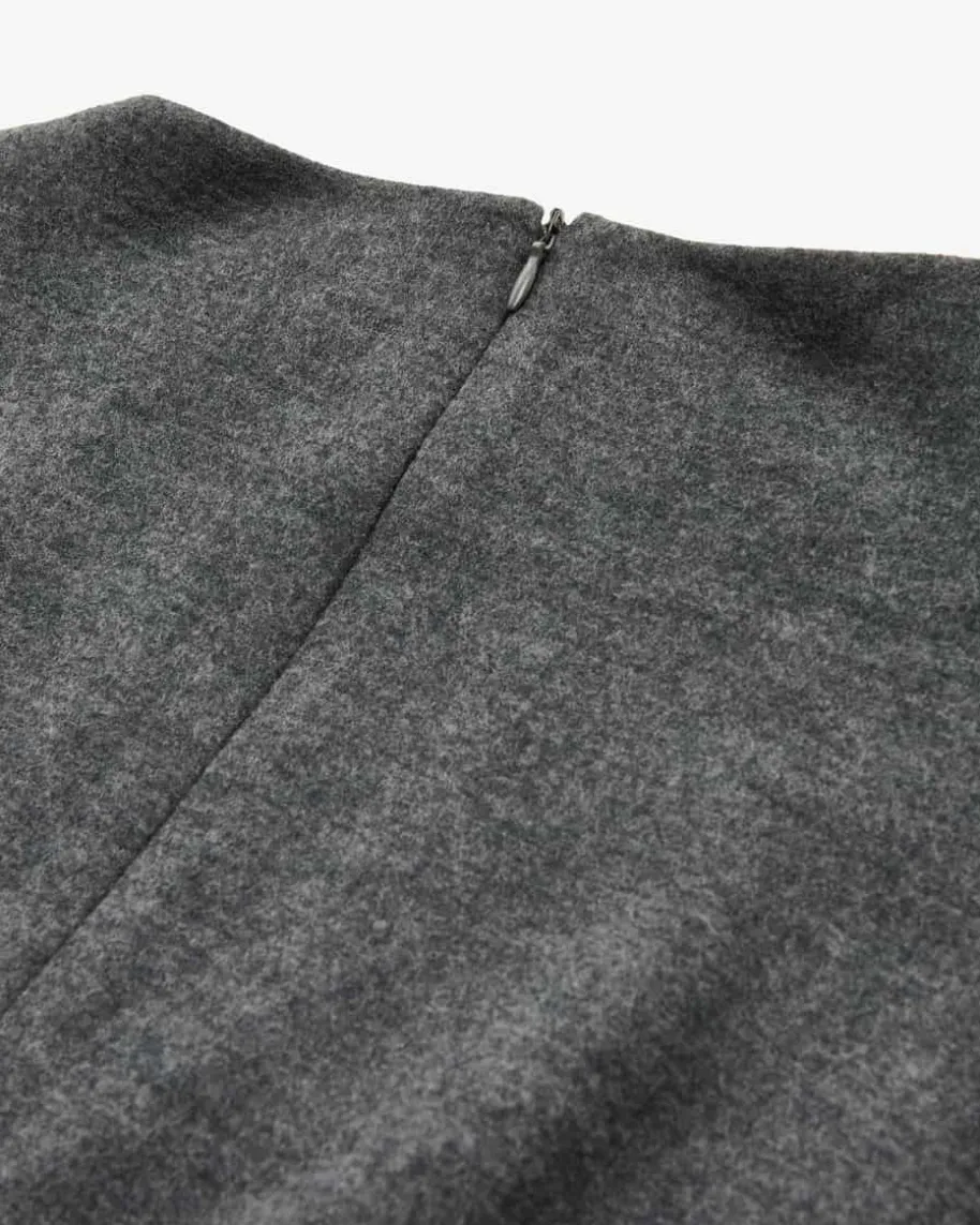 Poppie Kleid für Damen von SLY010 in Anthrazit. Das Modell präsentiert sich infemininer Aufmachung mit schmeichelnden Raffungen auf Taillenhöhe, während derStehkragen und die ausgestellten Ärmel eine Casual Note verleihen.