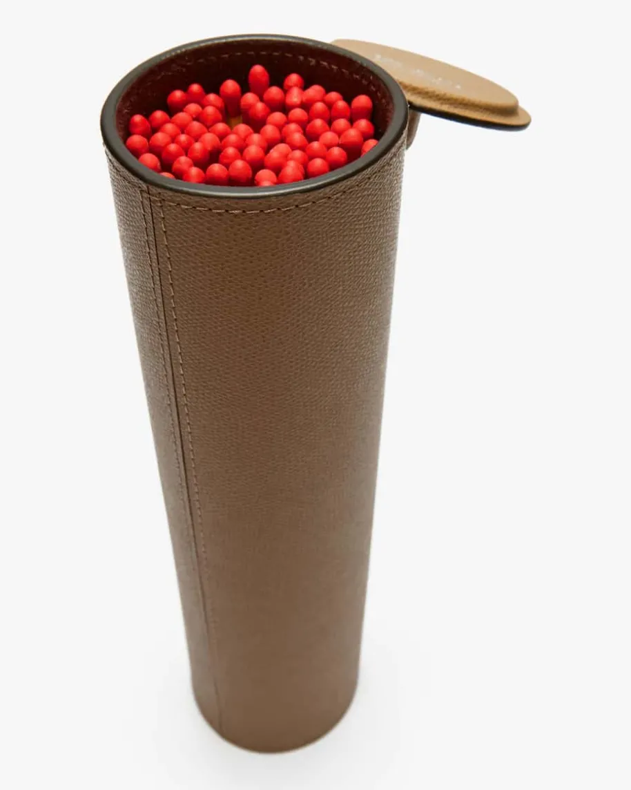 Prometo Giant Streichholz-Halter von Giobagnara in Taupe. Handmade in Italy –Feinste Leder-Verarbeitungen zeichnen die italienische Luxusmarke aus. Auchdiese stilvolle Aufbewahrung besticht dank der edlen Kalbsleder-Aufmachung alspraktisches und zugleich ästhetisches Deko-Piece, mit dem Sie großeStreichhölzer ideal präsentieren können.
