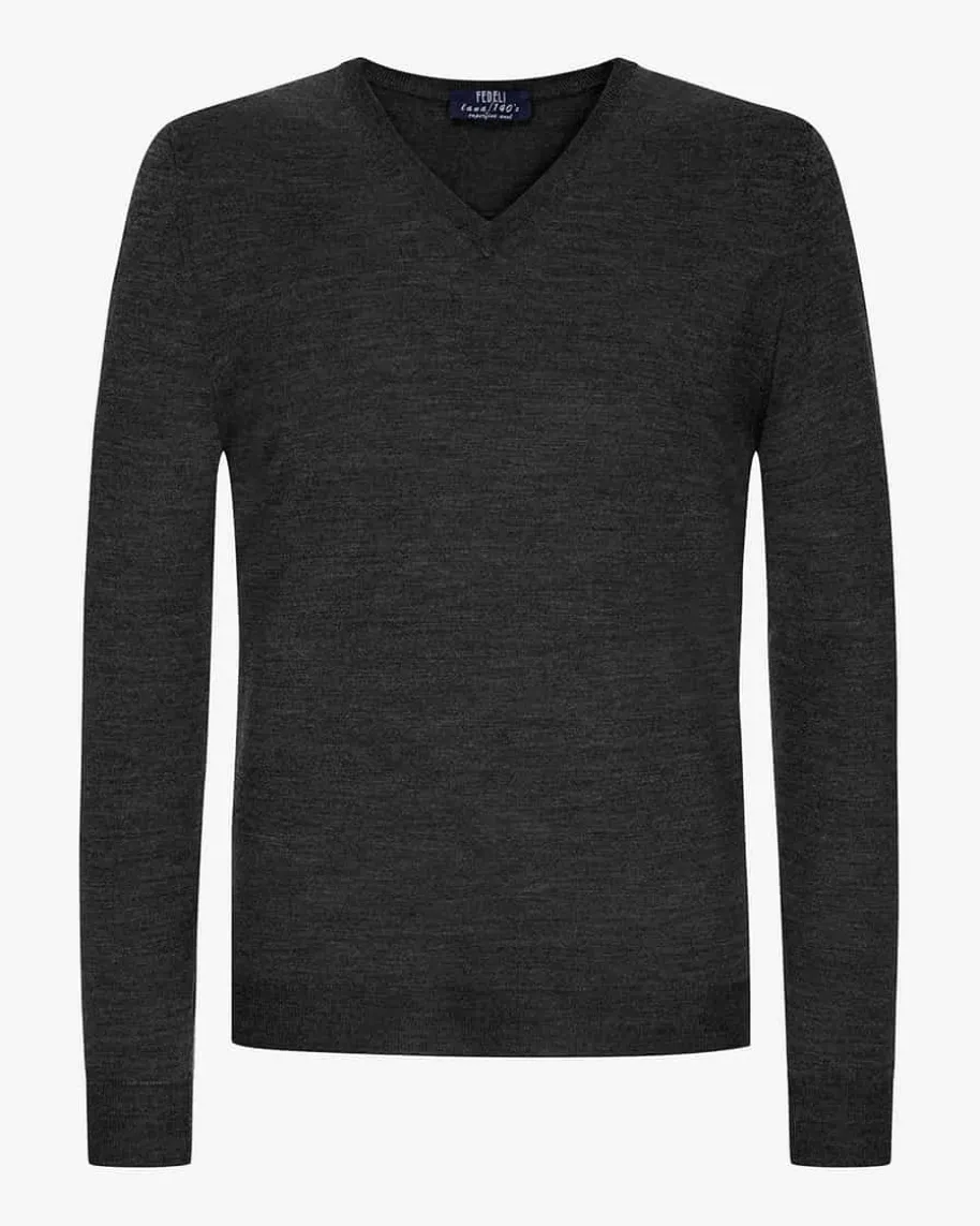 Pull M.L. Pullover für Herren von Fedeli in Anthrazit. Die sehr hochwertigeSuper140 Schurwoll-Qualität verleiht ein besonders angenehmes Tragegefühl, währenddas cleane Design einen vielseitigen Casual-Begleiter für klassische Outfitsschafft. Zudem wird dank einer besonderen Webtechnik eine perfekte Passformgewährleistet.