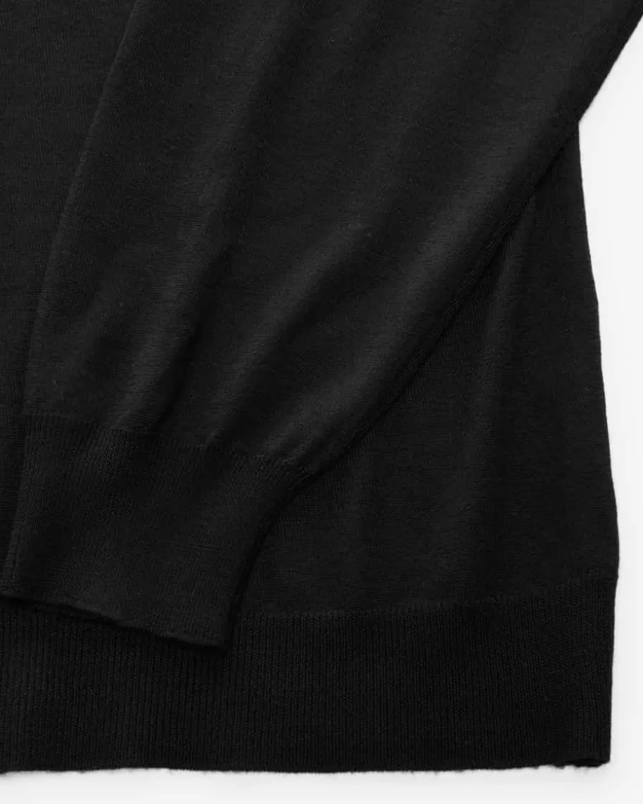 Pull M.L. Pullover für Herren von Fedeli in Schwarz. Die sehr hochwertige Super140 Schurwoll-Qualität verleiht ein besonders angenehmes Tragegefühl, währenddas cleane Design einen vielseitigen Casual-Begleiter für klassische Outfitsschafft. Zudem wird dank einer besonderen Webtechnik eine perfekte Passformgewährleistet.