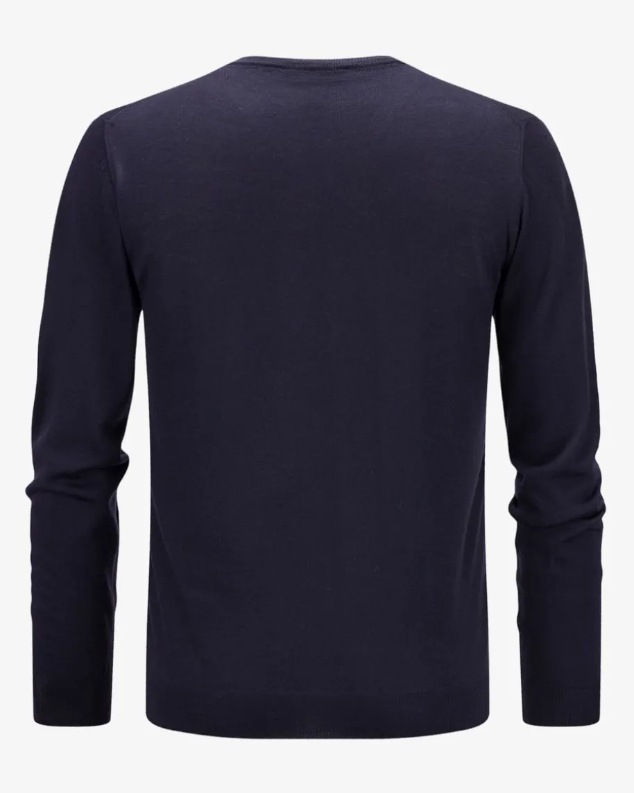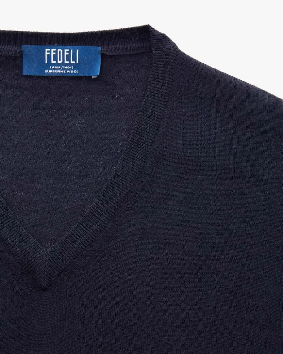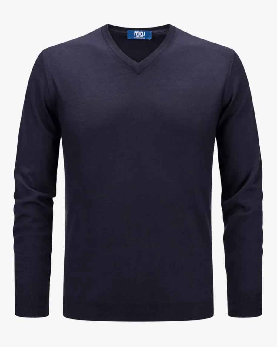 Pull M.L. Pullover für Herren von Fedeli in Marine. Die sehr hochwertige Super140 Schurwoll-Qualität verleiht ein besonders angenehmes Tragegefühl, währenddas cleane Design einen vielseitigen Casual-Begleiter für klassische Outfitsschafft. Zudem wird dank einer besonderen Webtechnik eine perfekte Passformgewährleistet.