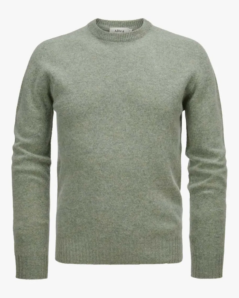 Pullover für Herren von Altea in Salbei. Made in Italy – Das Modell in feinmelierter Optik besticht dank der Verwendung von hochwertiger Shetland-Wolle miteiner weichen Haptik und Leichtigkeit, welche zugleich Wärme und Komfort bietet,ohne dabei zu beschweren. Ein kombistarker Strick-Favorit für Ihre Herbst-Winter-Garderobe.