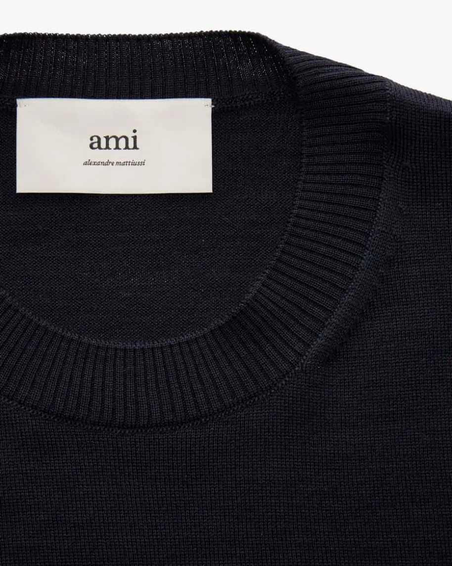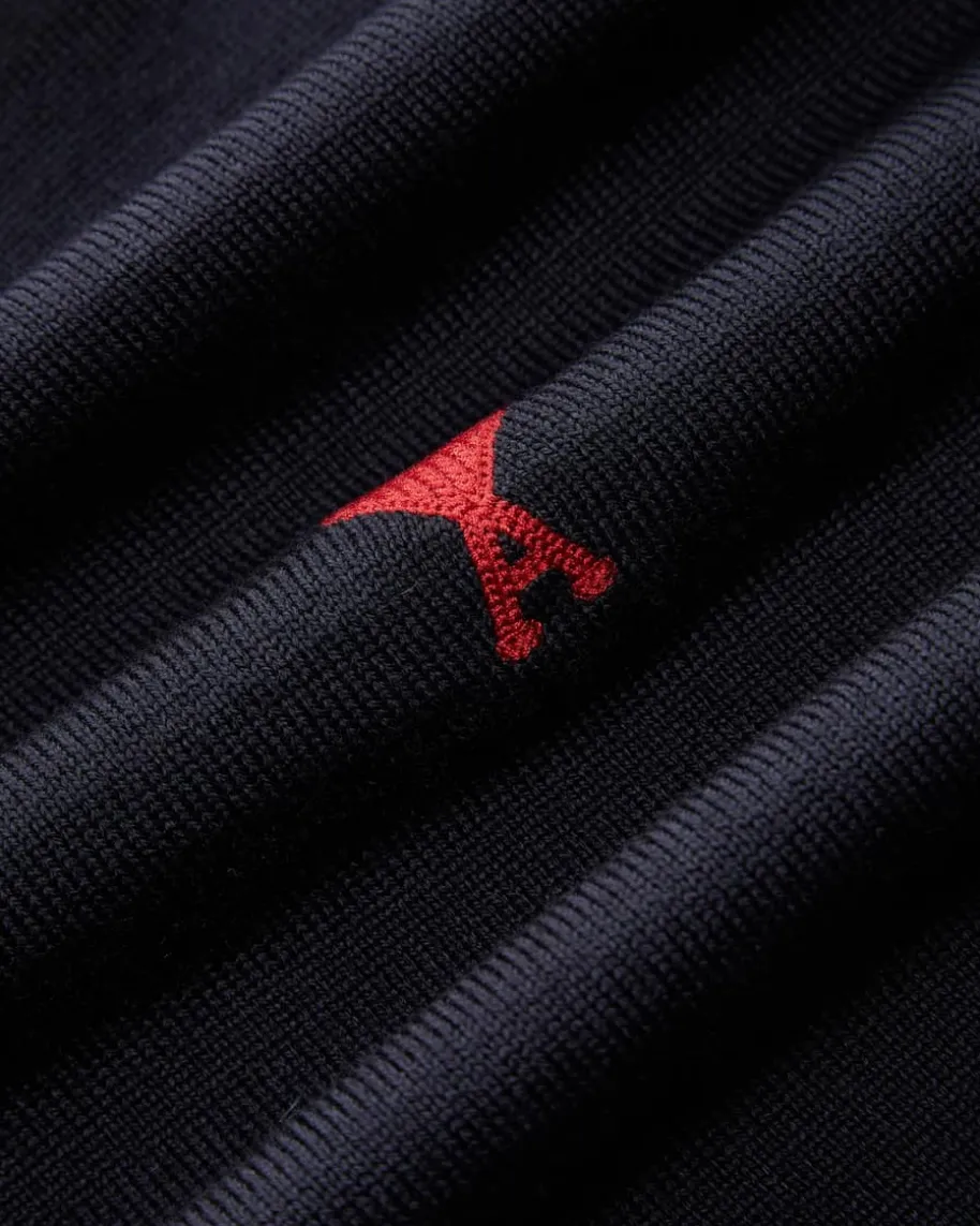 Pullover für Herren von Ami Paris in Nachtblau. Mit lockerem, verkürztem Schnittavanciert dieses Modell aus hochwertigem Merino-Feinstrick zum modischenBegleiter in Ihrer Garderobe. Die kontrastierende Logo-Stickerei vollendet denLook harmonisch.