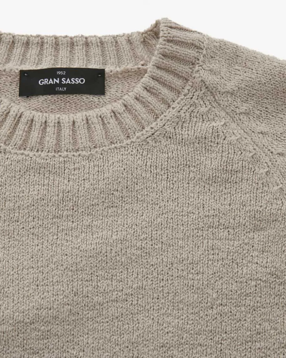 Pullover für Herren von Gran Sasso in Stein. Das fein gestrickte Modellüberzeugt mit der leichten Baumwoll-Qualität, während die modische Bouclé-Struktur dem Gesamtbild eine extravagante Note verleiht.