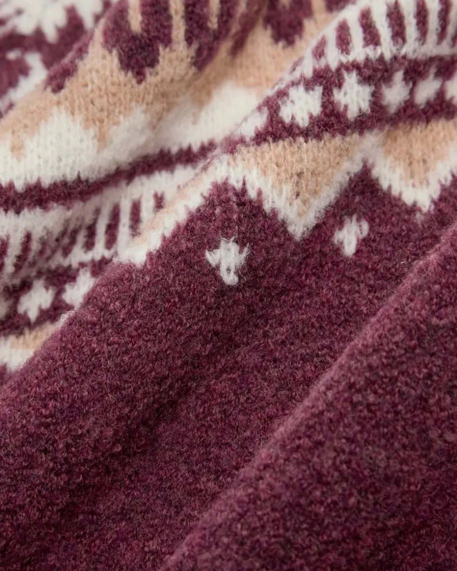 Pullover für Herren von Gran Sasso in Pflaume, Sand und Creme. Das Modell aushochwertigem Schurwoll-Mix avanciert dank des charakteristischen Norweger-Dessins zum modernen Casual-Favoriten mit Alpine-Chic-Flair, welcher durch dieBouclé-Aufmachung eine weiche Haptik erhält.