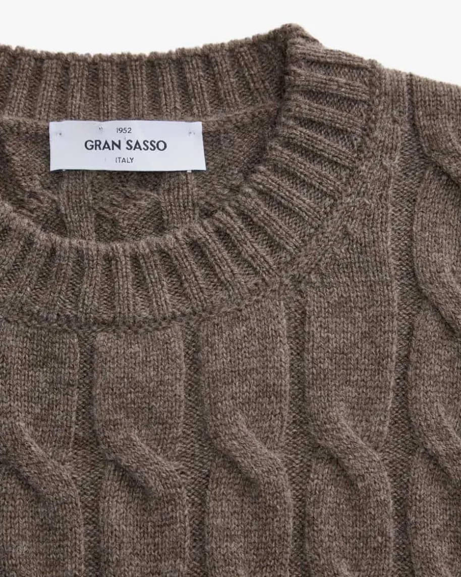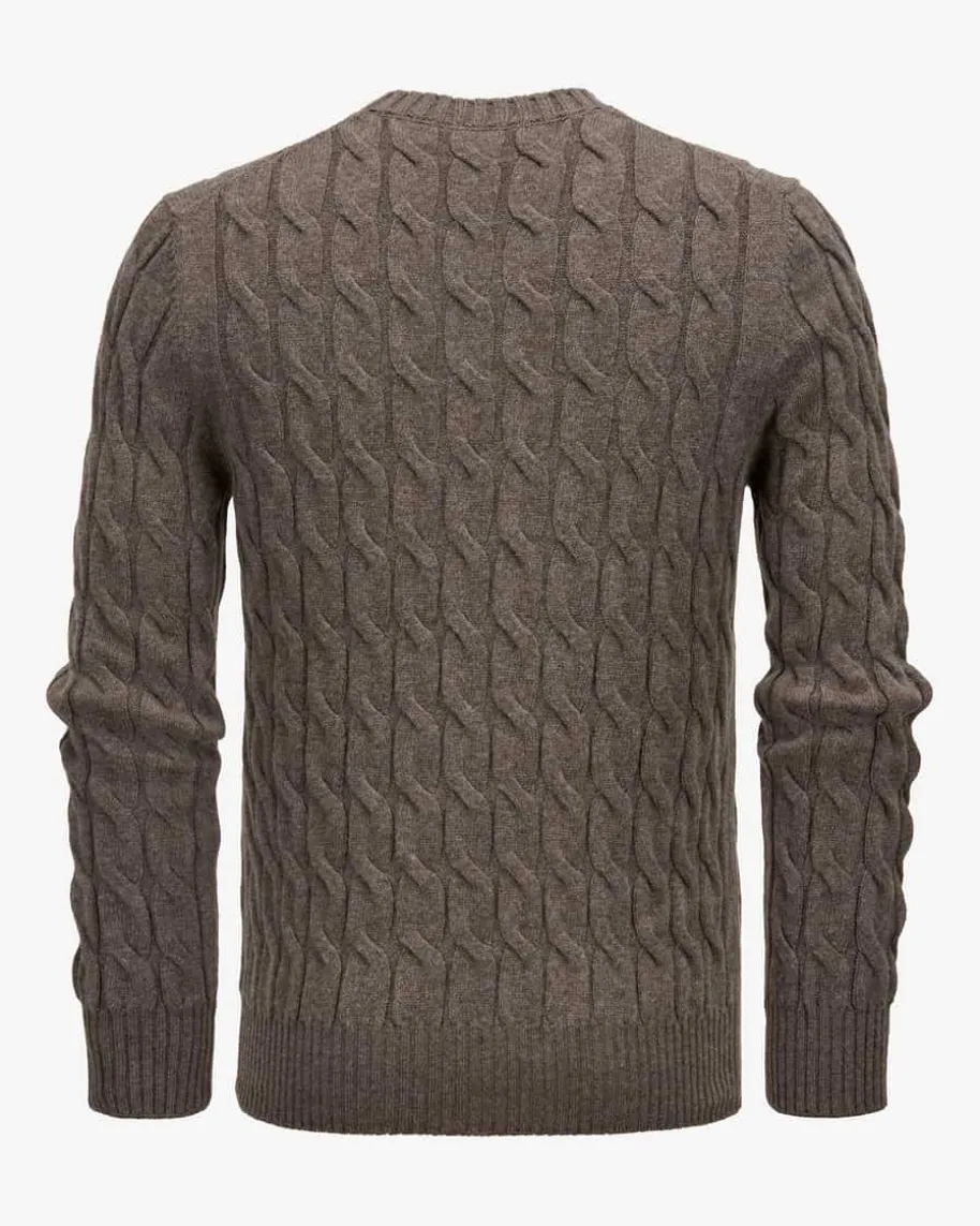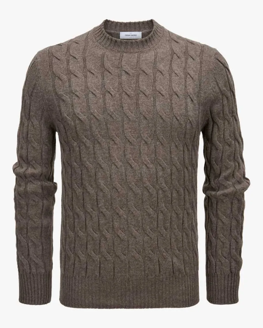 Pullover für Herren von Gran Sasso in Dunkelbraun. Das Modell aus angenehmemSchurwoll-Cashmere-Mix avanciert dank des charakteristischen Zopfstrick-Dessinszum vielseitig kombinierbaren Alltags-Favoriten, welcher durch die klassischenDetails gekonnt vollendet wird.