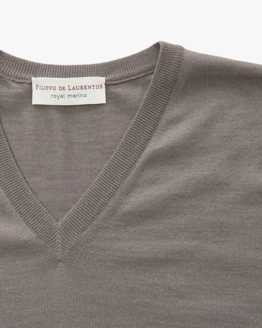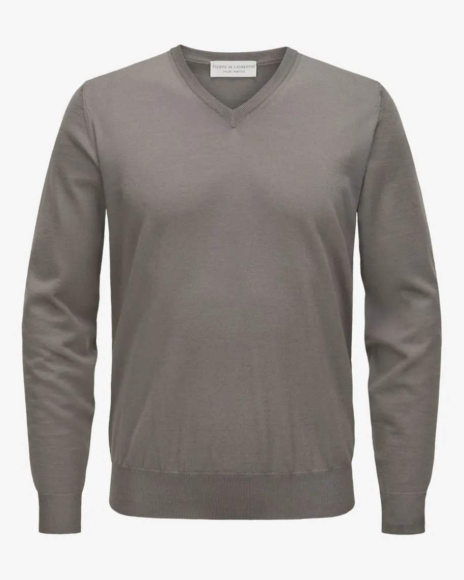 Pullover für Herren von Filippo de Laurentiis in Taupe. Dank der Verwendung vonhochwertiger Superfine 120s Merinowolle garantiert das leichte Modell angenehmeTragemomente und eine softe Haptik. Ein cleanes und unverzichtbares Basic fürvielseitige Casual-Looks.