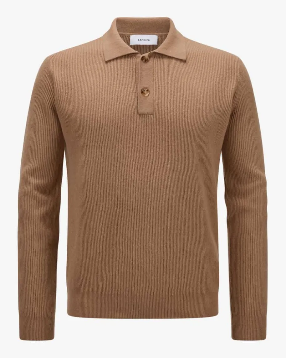 Pullover für Herren von Lardini in Camel. Geschmackvoll und chic, zeitlos undkomfortabel – Dafür steht das italienische Label Lardini. Während derhochwertige Schurwoll-Cashmere-Mix für einen weichen Griff sorgt, kreiert dasRippstrick-Design zusammen mit dem Polo-Kragen einen modernen Casual-Begleiterfür stilbewusste Herren.