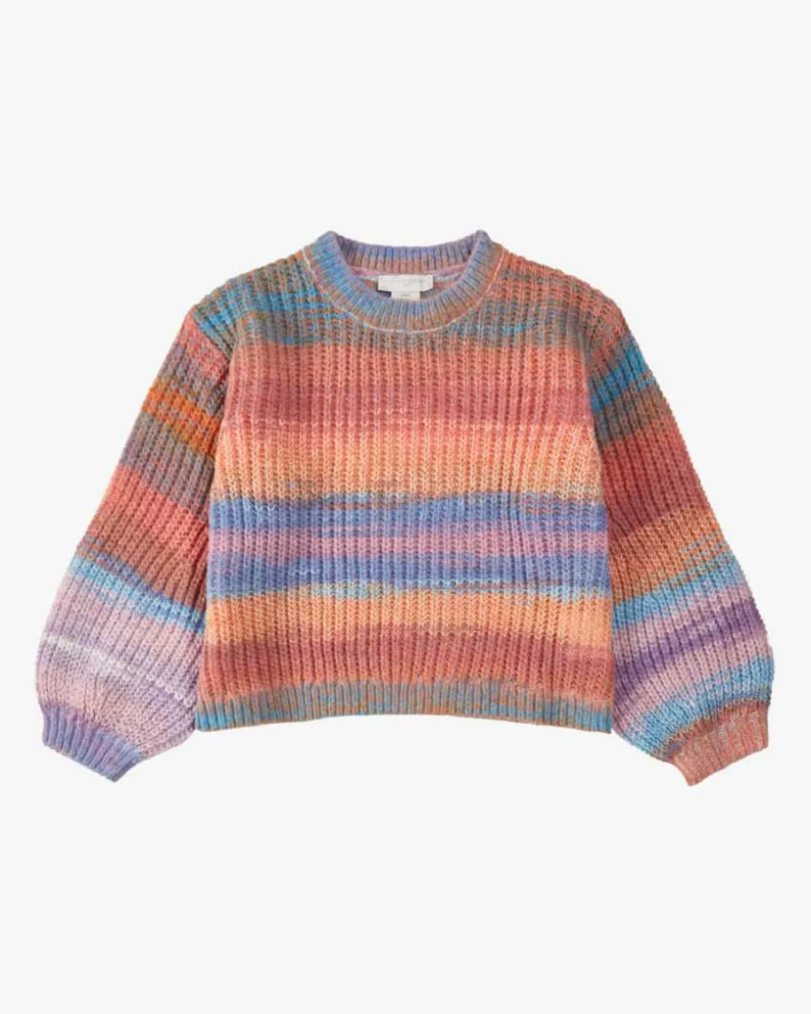 Pullover für Mädchen von Stella McCartney Kids in Orange, Flieder und Türkis.Das Modell präsentiert sich mit farbenfroher Strick-Aufmachung, während dieweiche Material-Qualität für besonders angenehmen Tragekomfort sorgt – Einmodischer Hingucker-Look im angesagten Multicolor-Stil.