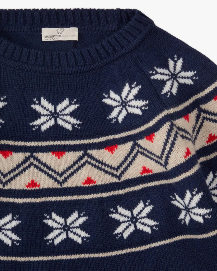 Pullover für Kinder von Maglificio di Verona in Navy. Das Modellüberzeugt dank hochwertiger Schurwoll-Qualität, während das traditionelleNorweger-Strickmuster einen winterlichen Style kreiert.