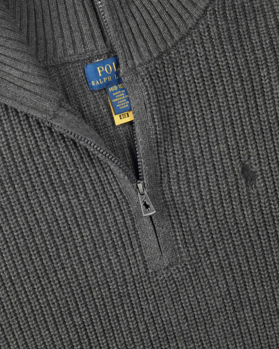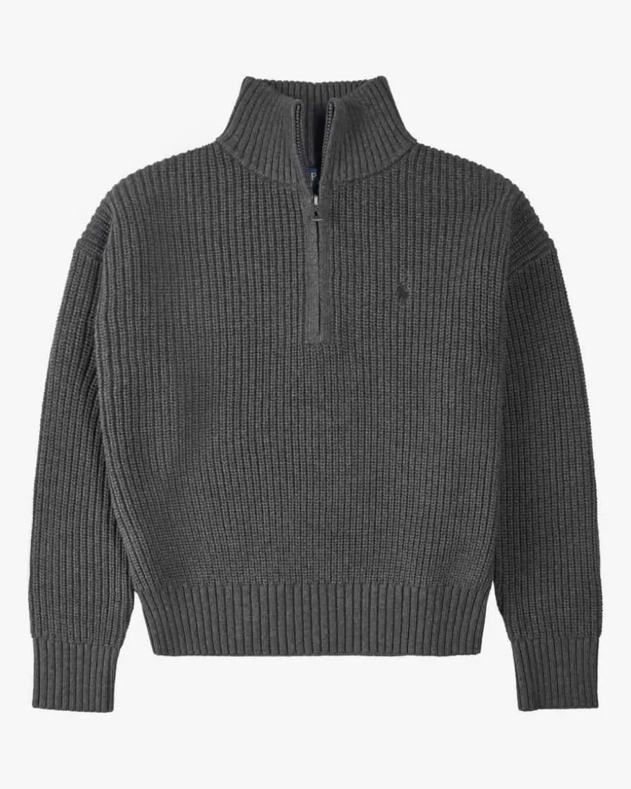 Pullover für Kinder von Polo Ralph Lauren in Dunkelgrau.Dank weiter Passformund tonaler Logo-Stickerei besticht das Modell in niedlicherAufmachung, währendder Baumwoll-Mix in Rippstrick-Qualität einen weichen Griffverspricht.