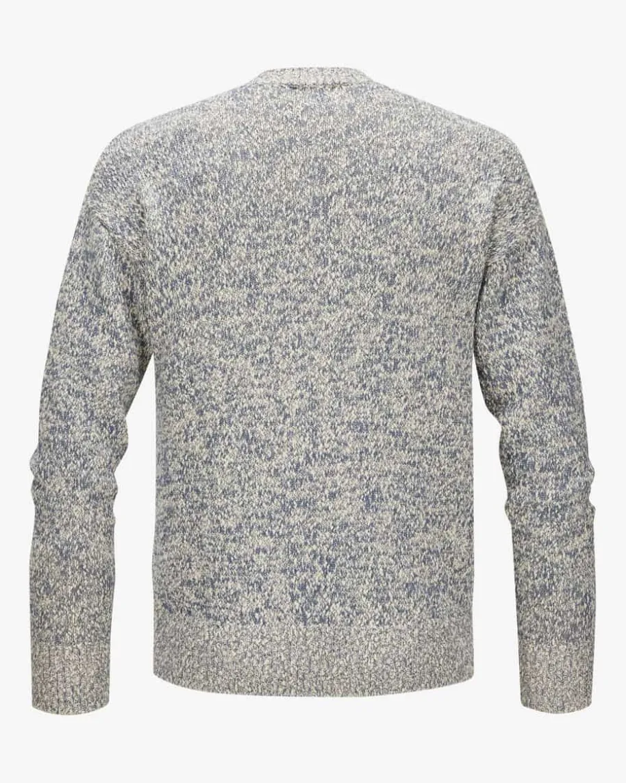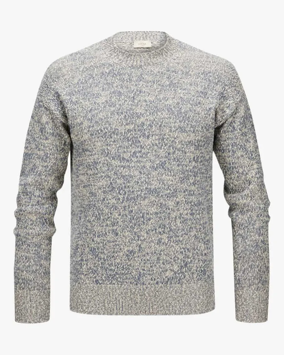 Pullover für Herren von Altea in Blau und Off-White. Das melierte Modellbesticht mit seiner Moulin-Baumwoll-Verarbeitung, wodurch optische Highlightsgesetzt werden. Ein modischer Favorit für Ihre Strick-Garderobe.