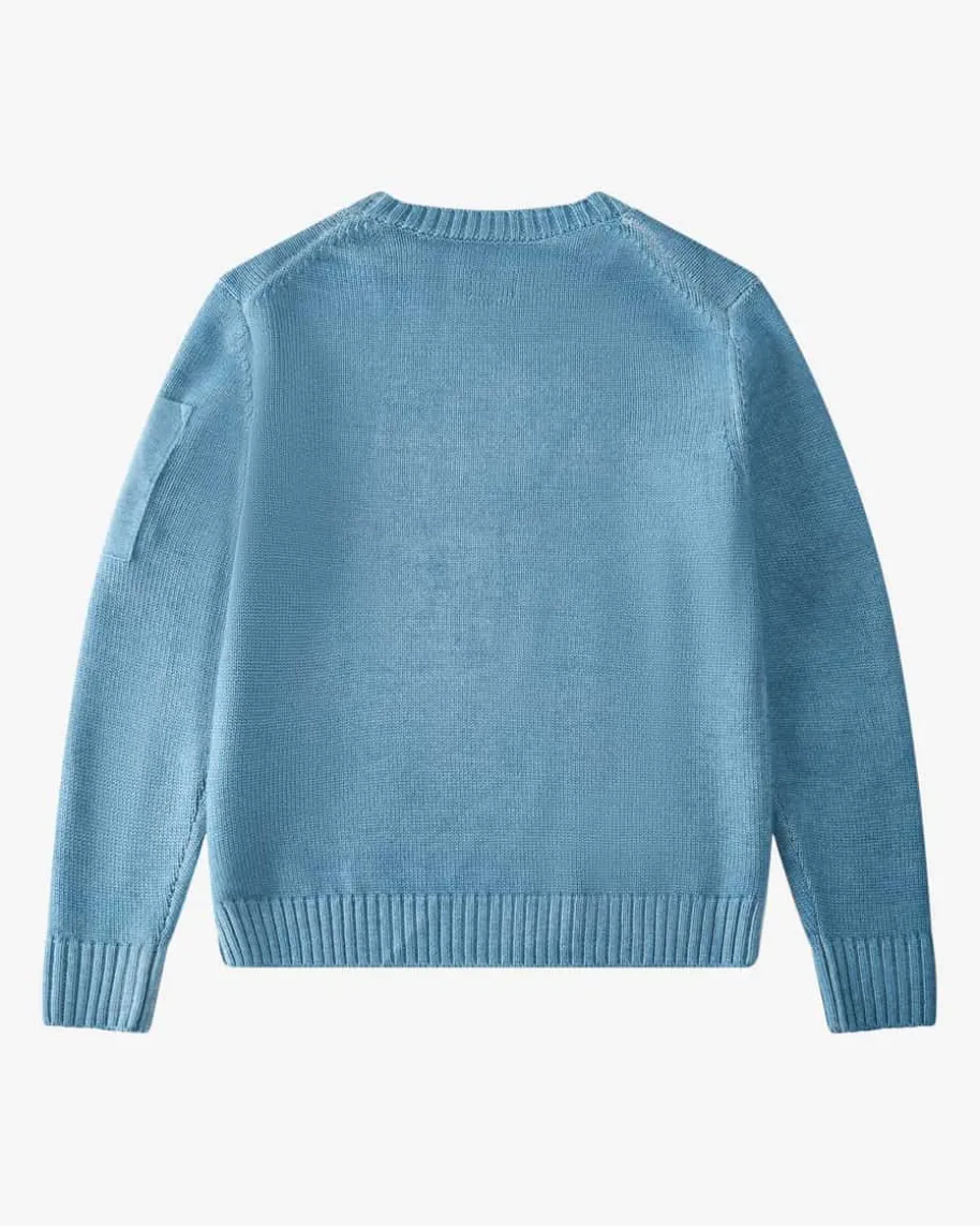 Pullover für Jungen von C.P. Company in Blau. Das Modell präsentiert sich mitraffinierter Washed Optik und labeltypischer Logo-Applikation am Arm, währenddie softe Woll-Verarbeitung für angenehmen Tragekomfort sorgt.