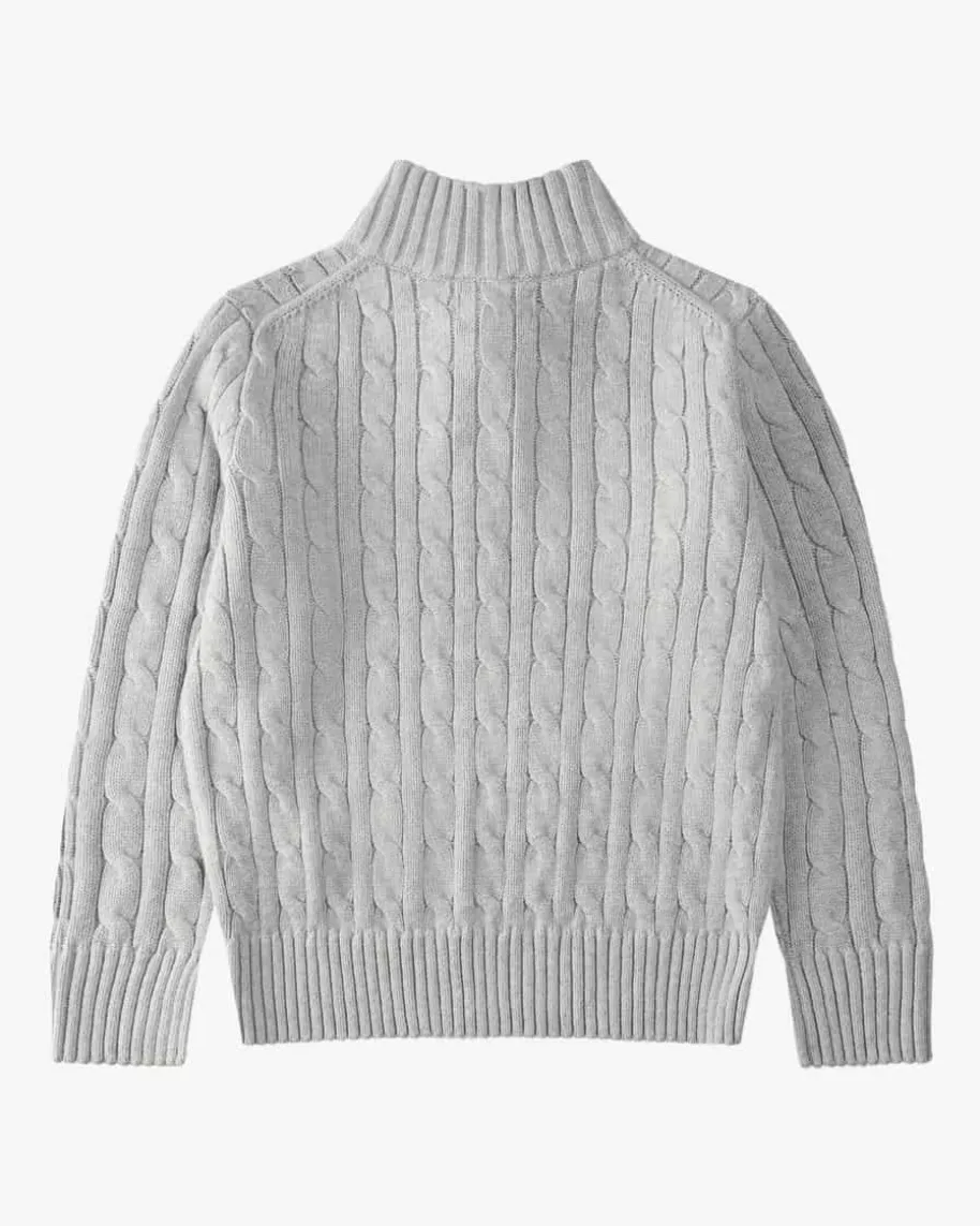 Pullover für Jungen von Polo Ralph Lauren in Grau. Eine Ikone des amerikanischenLifestyles – sportlich, preppy, klassisch. Das Modell überzeugt dank demstilvollen Zopfstrick-Muster als zeitloser Klassiker, während diekontrastierende Poloreiter-Stickerei das Design stilvoll abrundet.