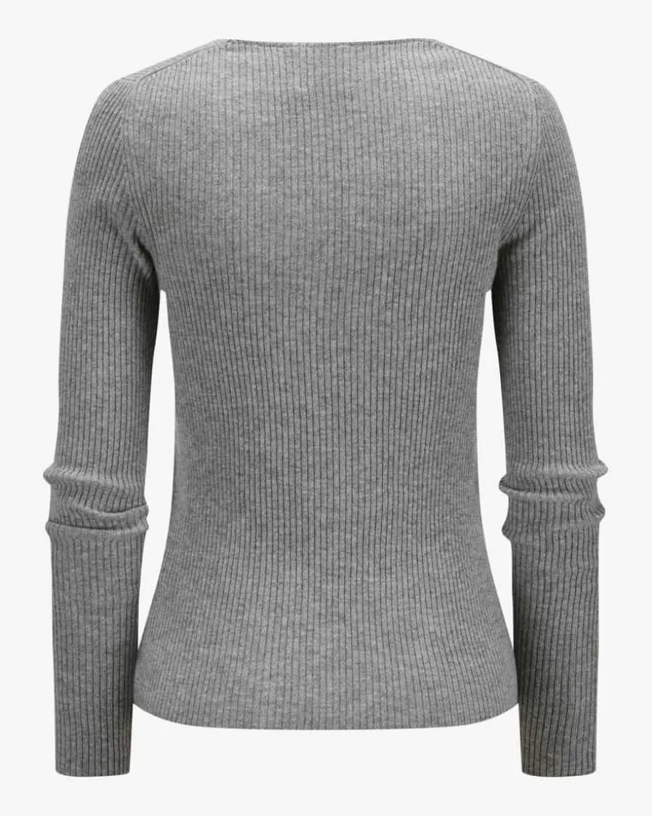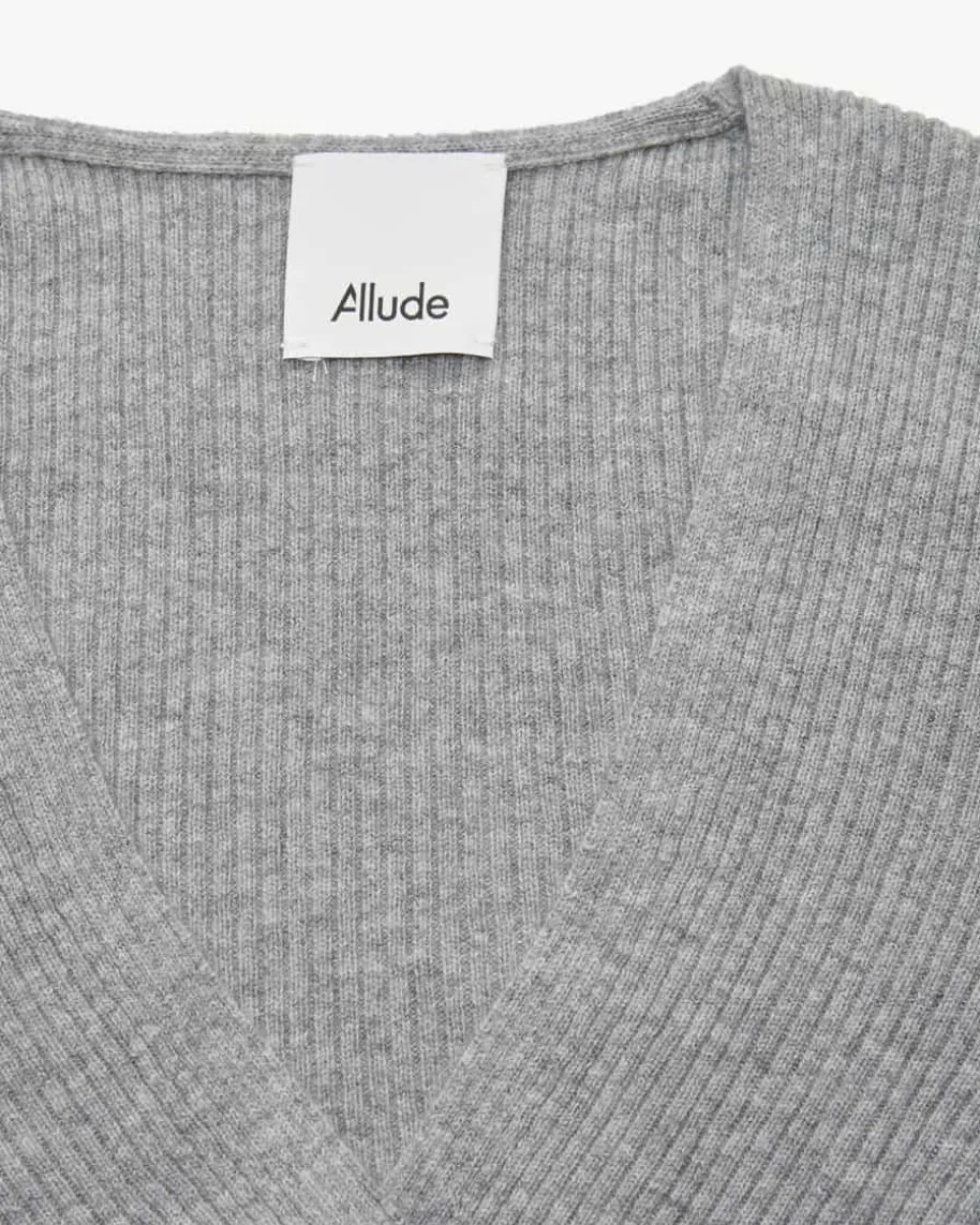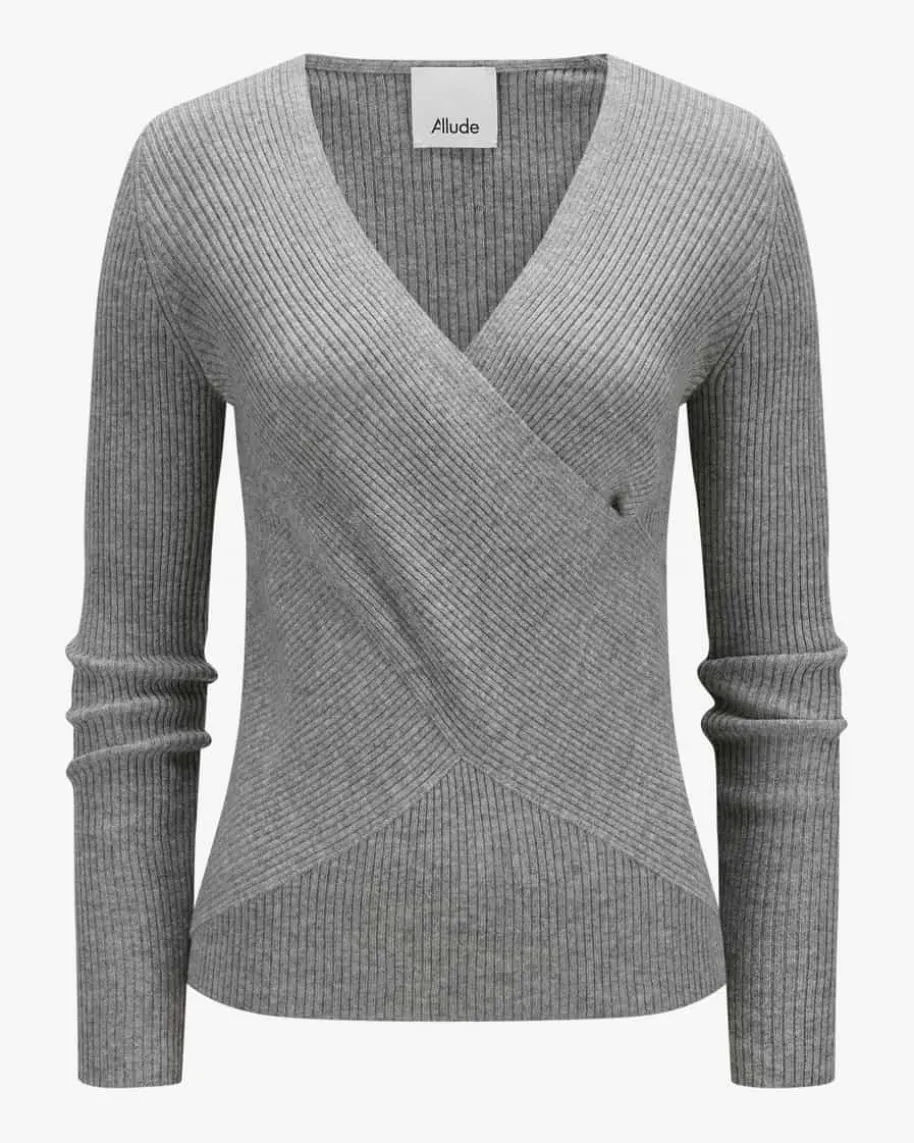Pullover für Damen von Allude in Grau. Das Münchner Label wurde 1993 von AndreaKarg gegründet und ist bekannt für luxuriöse Strickmode aus edlem Cashmere. Auchdieses melierte Modell überzeugt mit weichem Schurwolle-Cashmere-Mix inFeinstrick-Aufmachung, während die raffinierte Taille in Wickel-Optik einefeminine Silhouette mit dem gewissen Etwas zaubert.