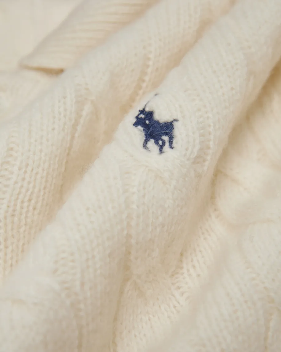 Pullover für Damen von Polo Ralph Lauren in Ecru. Qualität, Lifestyle,Authentizität und zeitlose Eleganz – all das zeichnet die Marke Polo RalphLauren seit nunmehr 50 Jahren Firmengeschichte aus. Das schmale Modellpräsentiert sich dank dem angenehmen Woll-Cashmere-Mix als zeitloser Favorit,während das moderne Zopfstrick-Dessin zusammen mit dem Polokragen den Looksportiv vollenden.