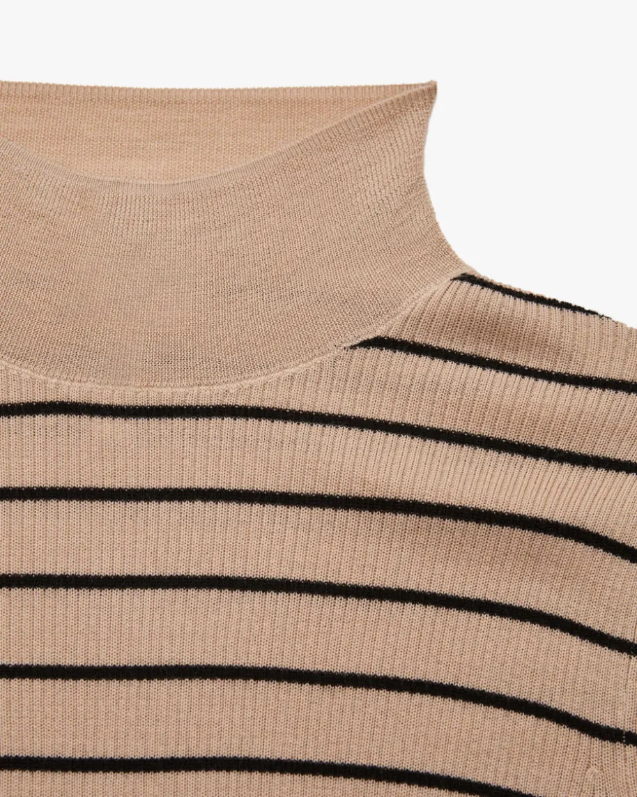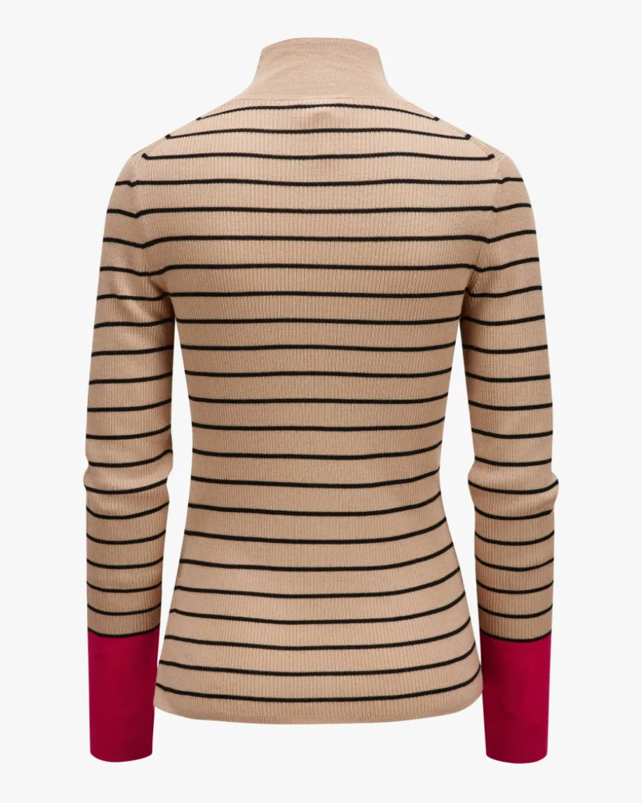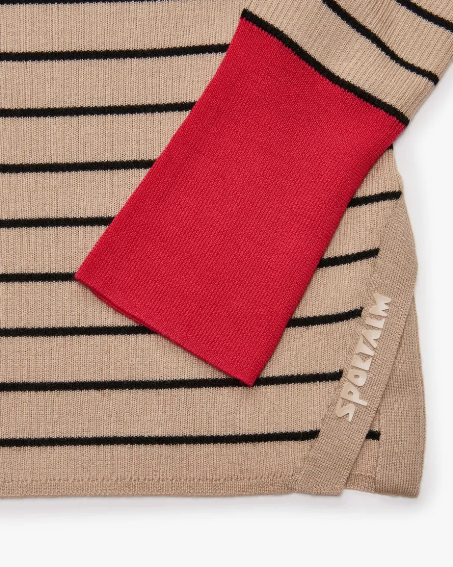 Pullover für Damen von Sportalm Emotion in Sand, Schwarz und Rot. Für dasösterreichische Modelabel stehen exklusive Designs sowie höchsteQualitätsstandards im Fokus. Auch dieses Modell begeistert mit weicherFeinstrick-Verarbeitung aus leichter Wolle, der für angenehmen Tragekomfortsorgt. Die schmale Passform mit eingestricktem Streifenmuster undkontrastfarbenen Ärmelenden rundet den Look mit sportivem Touch.