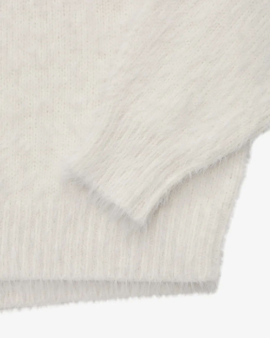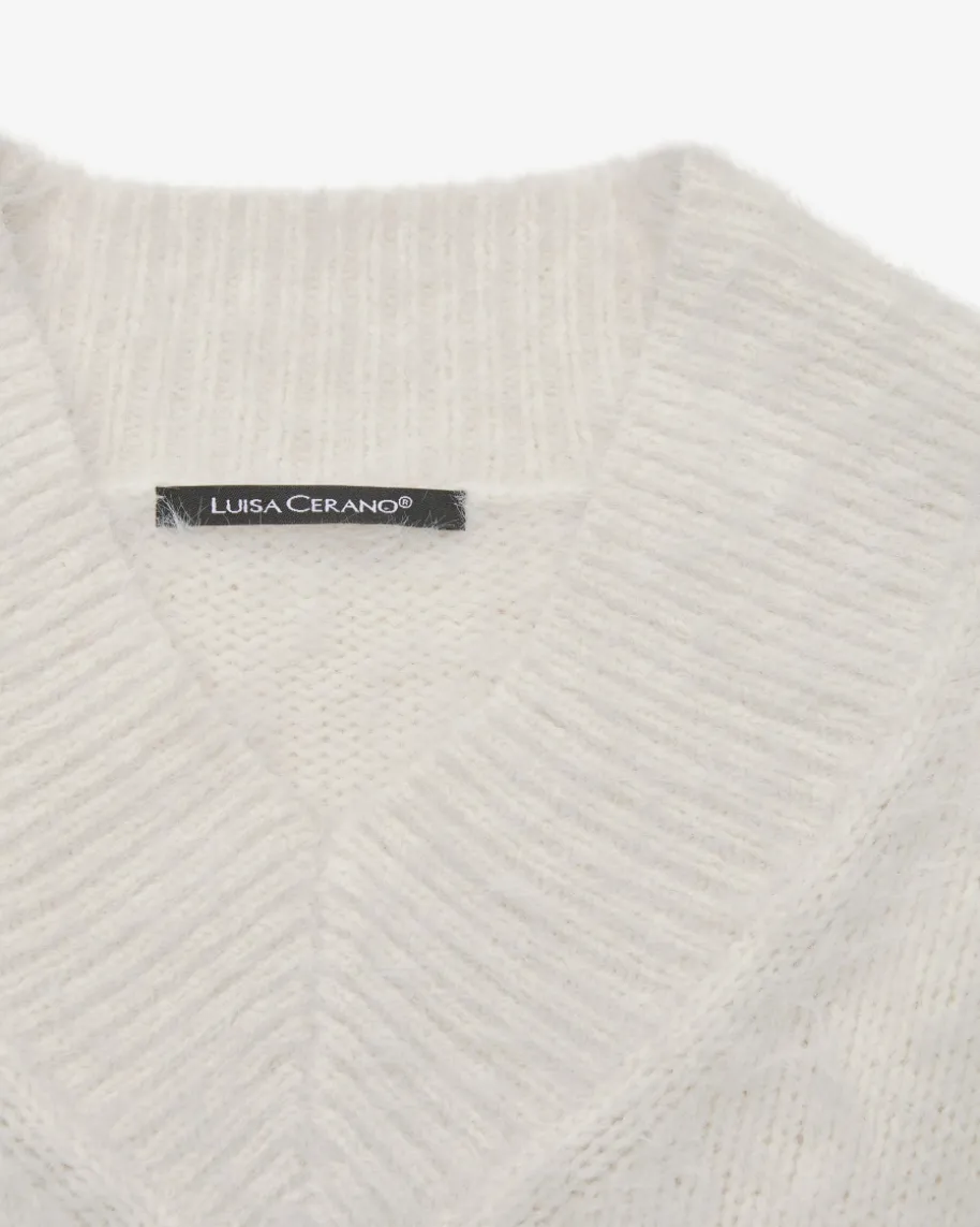 Pullover für Damen von Luisa Cerano in Creme. Das Modell aus weichem Woll-Mixpunktet dank der haarigen Aufmachung als modischer Favorit, während die legereSchnittführung mit markanten Rippstrick-Details einen komfortablen Herbst-Lookschafft.