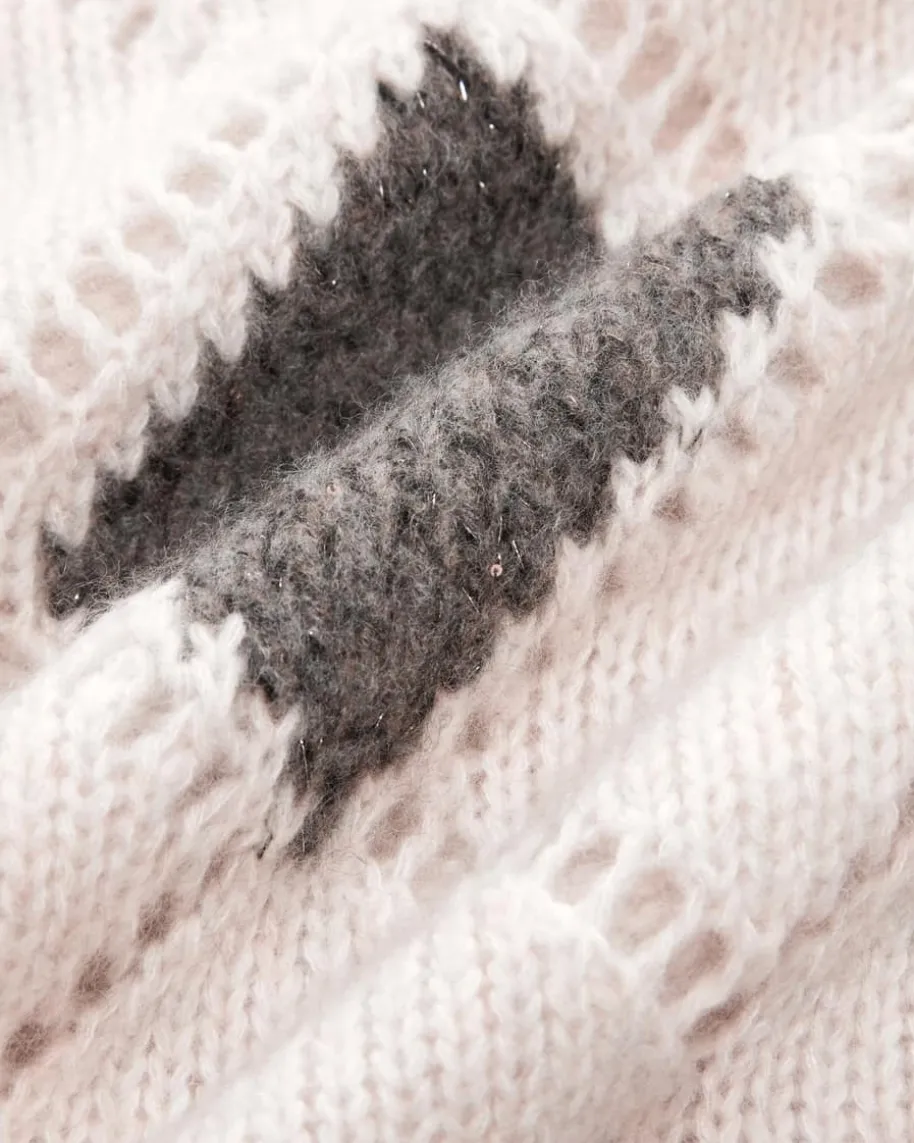 Pullover für Damen von Hemisphere in Ecru und Grau. Die deutsche Marke steht fürluxuriöse Strick- und Kaschmirteile mit Fokus auf Qualität, Weichheit undzeitlose Farben. Auch dieses Modell aus hochwertigem Cashmere-Mix überzeugt mitangenehm-weicher Haptik, während das Rauten-Strick-Design und die Glitzerfaserneinen zeitlos-modernen Begleiter für die kalte Jahreszeit schaffen.