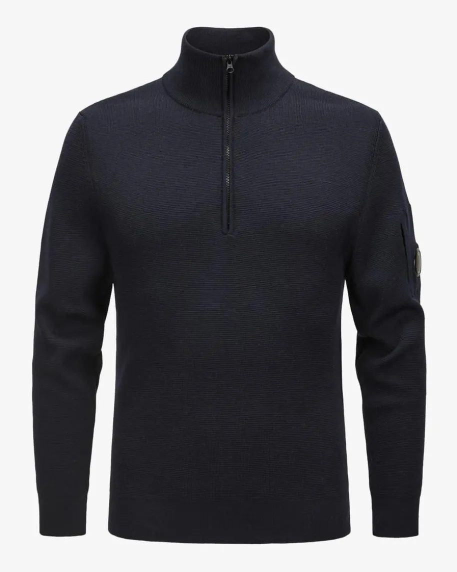 Pullover für Herren von C.P. Company in Navy. Die italienische Marke verbindetMilitärästhetik mit Funktion und ist bekannt für innovative Materialien undFärbetechniken. Auch dieses Modell aus softem Schurwoll-Mix punktet im dezentenStrickmuster und mit Details im sportiven Look.