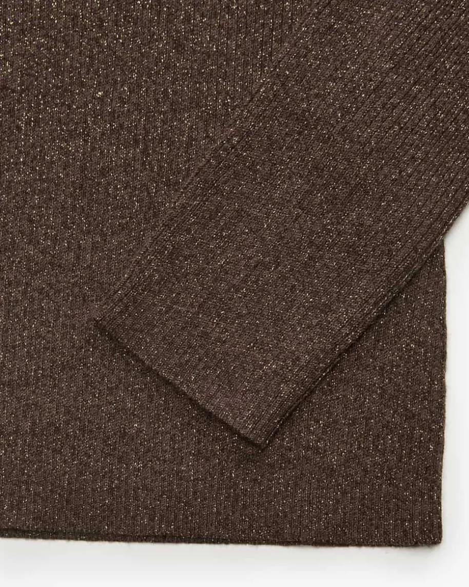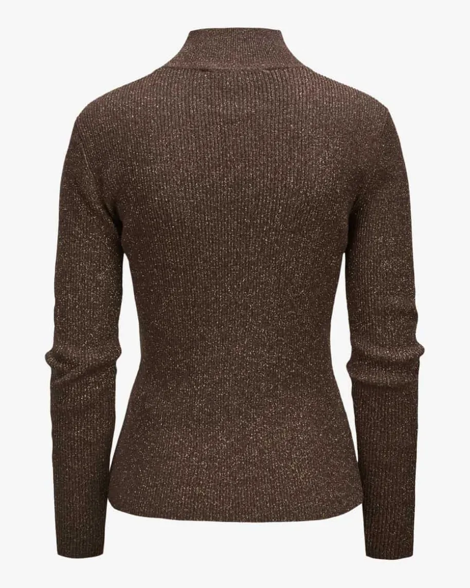 Pullover für Damen von Luisa Cerano in Dunkelbraun. Das Modell punktet alsfemininer Begleiter dank der glitzernden Fasern und der schmalen, tailliertenSchnittführung, während das elastische Rippstrick-Design angenehme Tragemomenteverspricht.