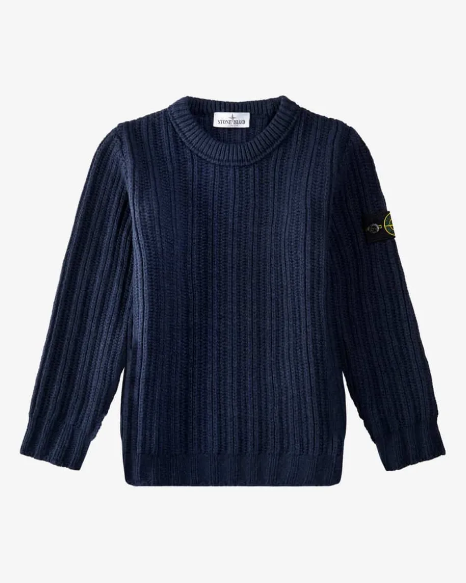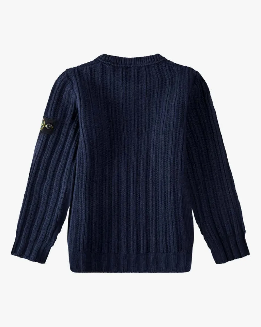 Pullover für Jungen von Stone Island Junior in Navy. Das Modell aus hochwertigemSchurwoll-Mix überzeugt mit schwerem Strick-Design, während die abnehmbare Logo-Plakette den Look charakteristisch abrundet.