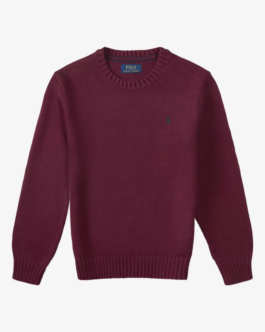 Pullover für Jungen von Polo Ralph Lauren in Bordeaux. Während die Baumwoll-Strickqualität sowohl haptisch als auch optisch überzeugt, kreiert dasklassische Design mit markanten Rippstrick-Bündchen in Kombination mit derkontrastierenden Logo-Stickerei einen modernen Casual-Look.