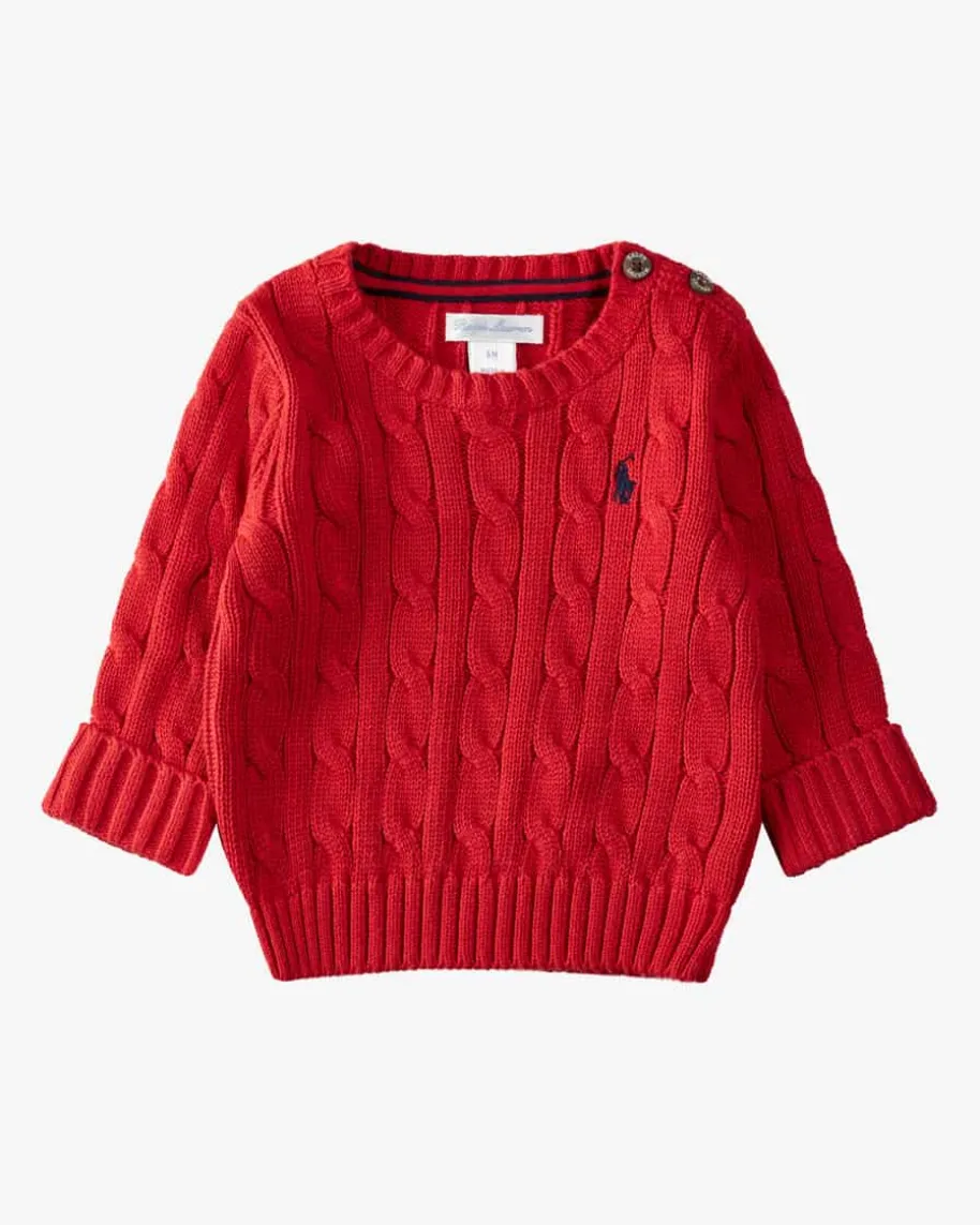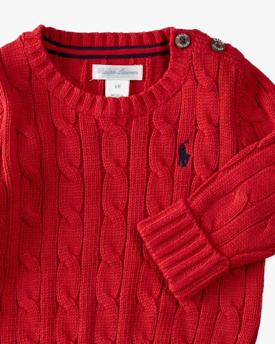 Pullover für Jungen von Polo Ralph Lauren in Rot. Das Modell überzeugtdankdem stilvollen Zopf-Muster als zeitloser Klassiker, während die kontrastierendeLogo-Stickerei auf Brusthöhe das Design stilvoll abrundet.