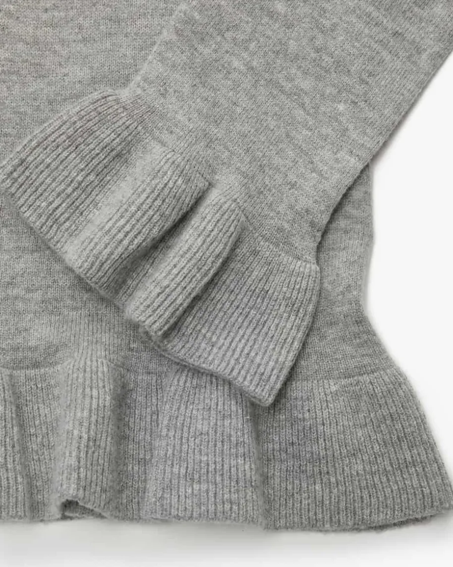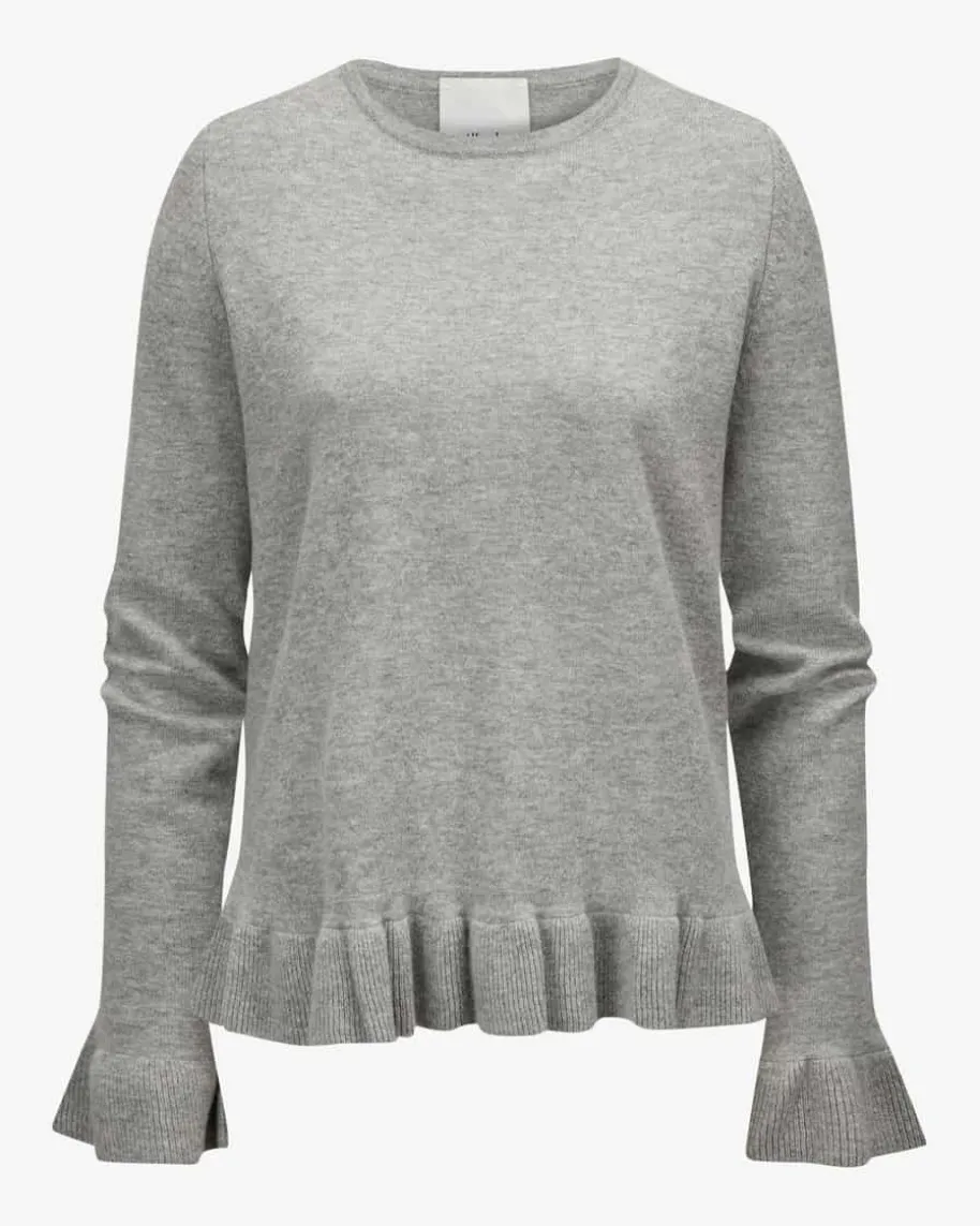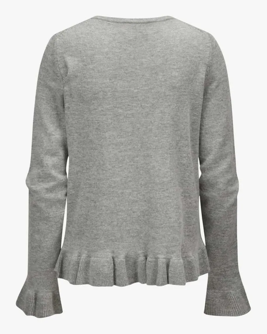 Pullover für Damen von Allude in Grau. Das Münchner Unternehmen Allude steht fürMode, die Selbstbewusstsein und zeitlose Individualität ausstrahlt. Das Modellbegeistert mit hochwertigem Schurwoll-Cashmere-Mix, welcher für angenehmenTragekomfort sorgt. Dank Volantsaum in Rippstrick-Aufmachung avanciert der Stylezum romantischen Favoriten für modische Country-Looks.