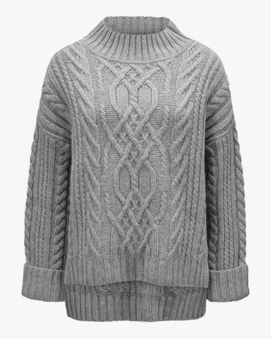 Pullover für Damen von Marc Cain in Grau. Das in Deutschland gefertigte Modellbesticht dank der hochwertigen Material-Qualität mit einem besonders weichenGriff, während die Oversize-Passform sowie das modische Zopfstrick-Muster demGesamtbild den letzten Schliff verleihen.