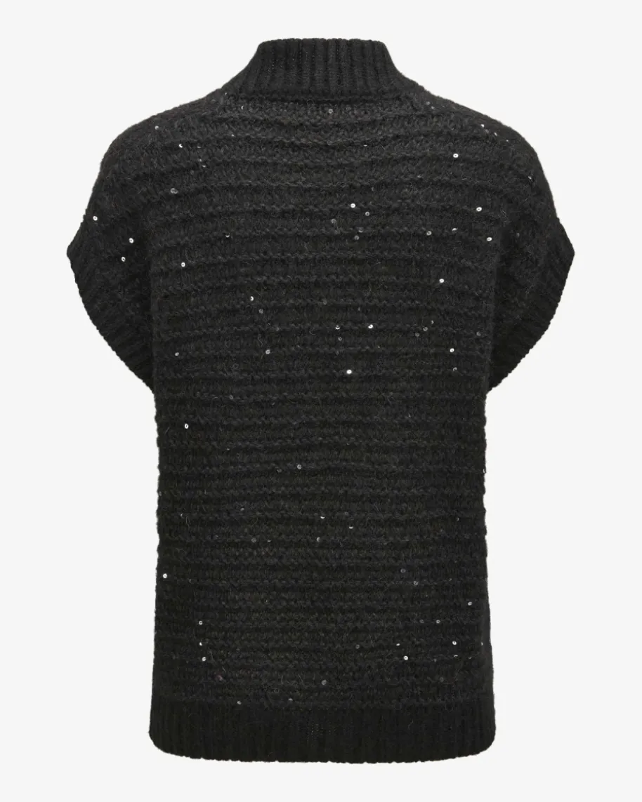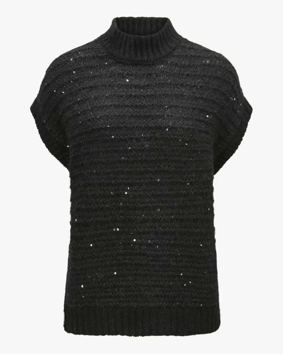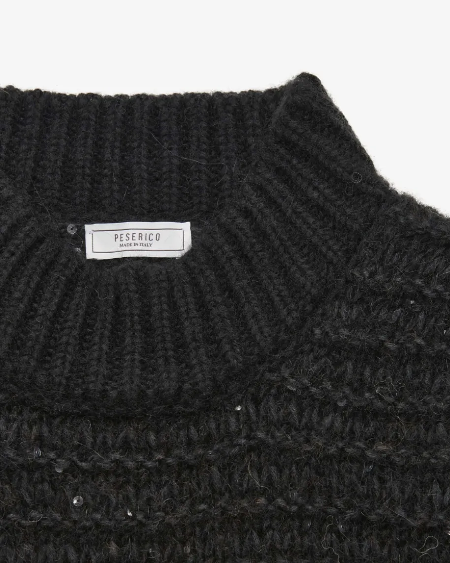 Pullunder für Damen von Peserico in Schwarz. Das kastige Modellaus hochwertigem Alpakawoll-Mix in weichem Grobstrick punktet dank der Melange-Optik mit changierenden Pailletten-Applikationen als modernes Highlight, währendder sonst legere Style einen idealen Layering-Favoriten für Ihre Herbst-/Winter-Garderobe kreiert.