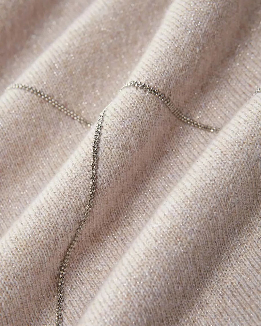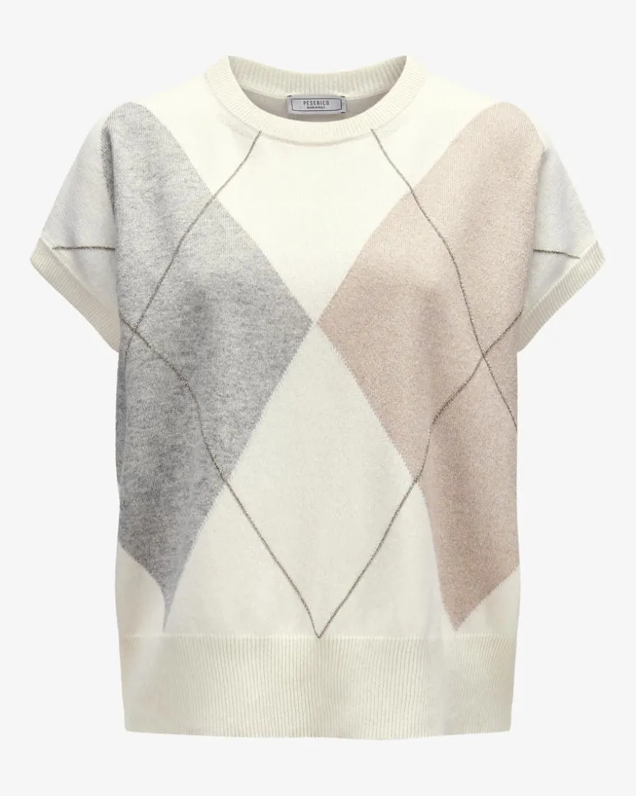 Pullunder für Damen von Peserico in Creme, Hellgrau und Sand. Das Modell ausedler Schurwoll-/Seiden-Qualität präsentiert sich mit legerem Oversize-Fitmodisch, während das Rauten-Dessin für einen klassischen Charakter sorgt. DieGlitzer-Details setzen zusammen mit den labelypischen Schmuckketten-Applikationen zudem besondere Akzente.