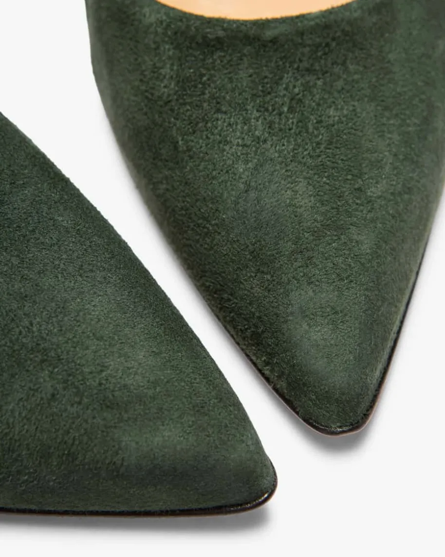 Pumps für Damen von LODENFREY in Dunkelgrün. Ob zur Tracht oder für andere,besondere Anlässe – Während sich dieses Modell in klassischem Pumps-Designpräsentiert, setzt die spitze Zehenpartie modische Akzente. Die hochwertigeVeloursleder-Qualität rundet das Gesamtbild stilvoll ab.