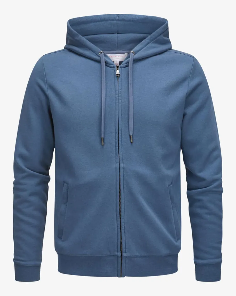 Quinn Sweatjacke für Herren von Derek Rose in Blau. Das Modell besticht durchdieweiche Sweat-Qualität und die schlichte Aufmachung, während die legere Passformsowie elastische Bündchen für hohen Tragekomfort sorgen. PraktischeReißverschluss-Taschen sowie das dezente Logo-Detail rundet den Loungewear-Favoriten zudem harmonisch ab.