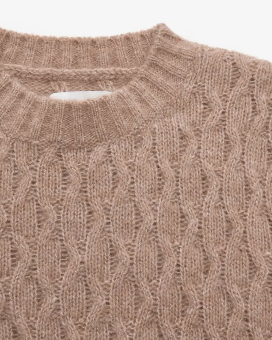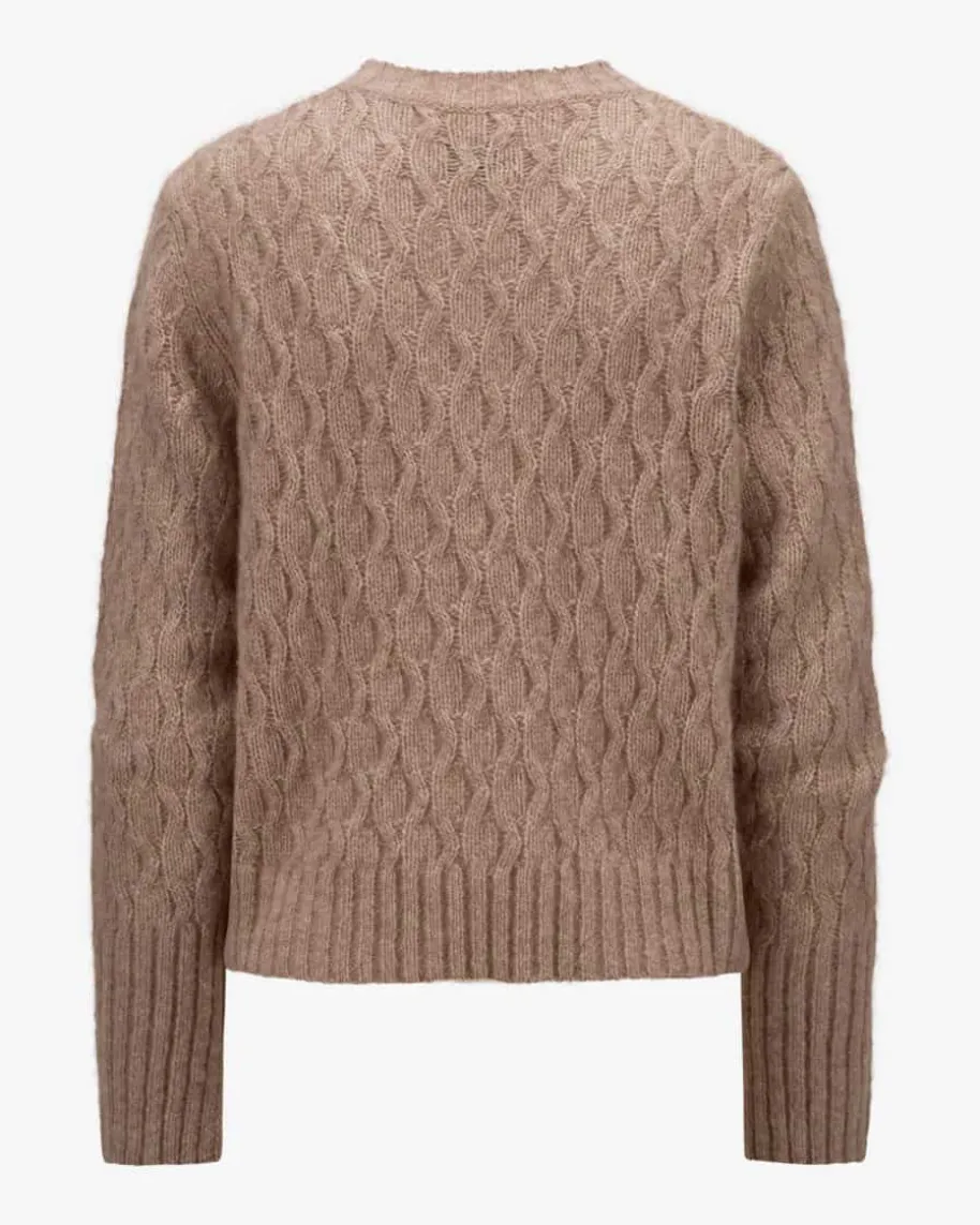 Ramster Cashmere-Seiden-Pullover für Damen von Lu Ren in Fawn. Dank derVerwendung von hochwertigem Cashmere-Seiden-Mix, besticht das Modell mitbesonders weichem Griff, während das moderne Zopfstrick-Design einen stilvollenBegleiter für vielseitige Casual-Looks schafft.