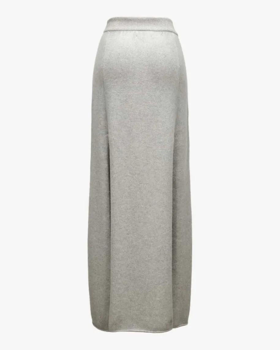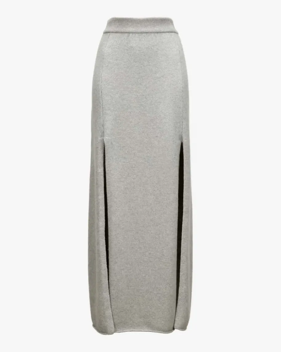 Rena Cashmere-Rock für Damen von Lisa Yang in Hellgrau. Dieses Modellpräsentiert sich mit raffinierten Beinschlitzen, die für einen modischen Looksorgen. Die Glitzer-Fasern setzen zudem noch besondere Akzente.