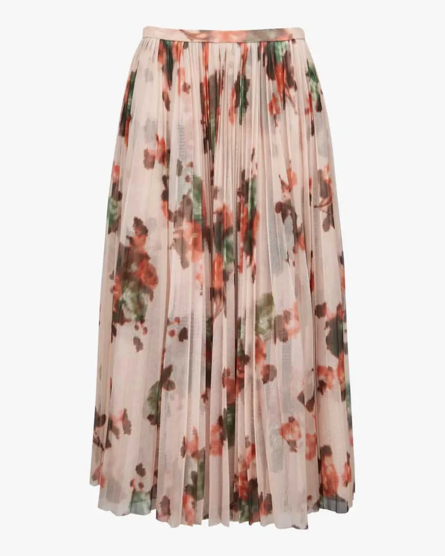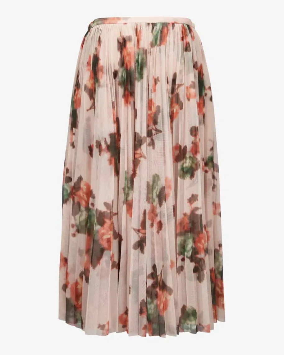 Rock für Damen von Philosophy in Rosé, Rot und Grün. Durch die semitransparentenTülllagen und die Plissee-Aufmachung erhält dieses Modell eine romantische Note,welche durch den floralen Print harmonisch vollendet wird.