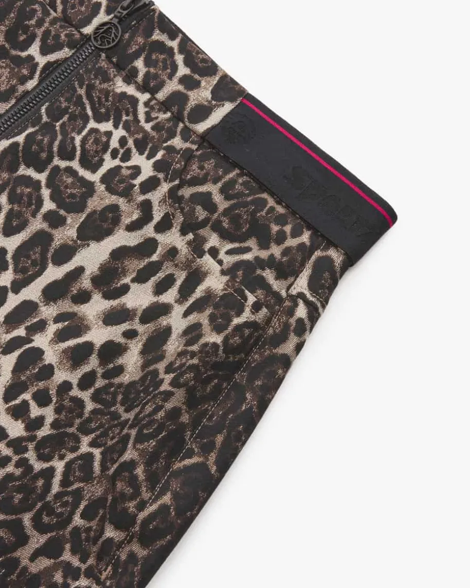 Rock für Damen von Sportalm Emotion in Braun und Gold. Das Modell aus leichtemBaumwoll-Mix avanciert dank dem Allover-Leomuster mit goldfarbenen Glitzerfasernzum modischen Highlight, welches durch den durchgehenden Reißverschluss sowiedas Gummiband eine sportive Note erhält. Für einen femininen Zweiteiler-Lookkönnen Sie die passende Jacke kombinieren.
