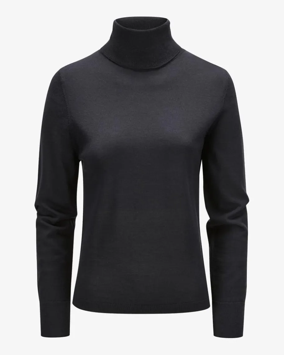 Rollkragenpullover für Damen von Allude in Navy. Das Münchner Unternehmen Alludesteht für Mode, die Selbstbewusstsein und zeitlose Individualität ausstrahlt.Gefertigt aus hochwertiger Schurwolle, besticht das cleane Modell mitbesonders weichem Griff und leichter Strick-Haptik. Die schmale Silhouettekreieren einen modischen und femininen Favoriten.
