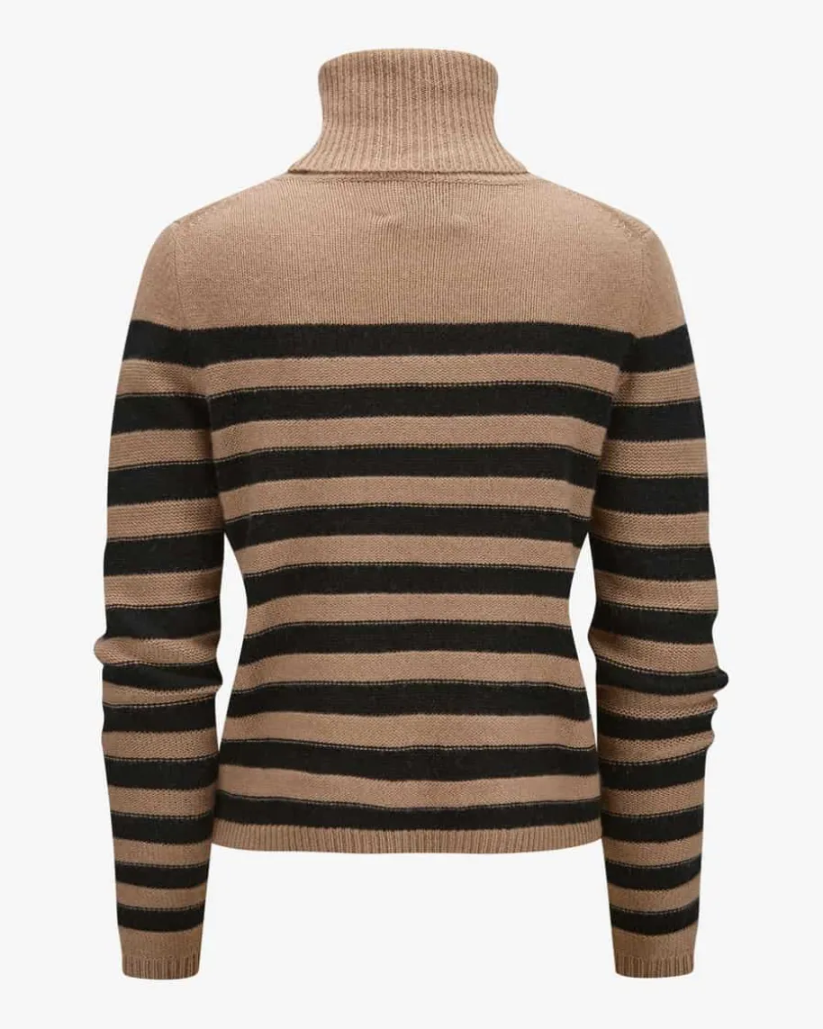 Rollkragenpullover für Damen von Allude in Camel und Schwarz. Das Münchner Labelwurde 1993 von Andrea Karg gegründet und ist bekannt für luxuriöse Strickmodeaus edlem Cashmere. Auch dieses Modell überzeugt mit hochwertigem Schurwolle-Cashmere-Mix, der für angenehmen Tragekomfort sorgt. Das elegante Streifenmusterrundet den modischen Style harmonisch ab.