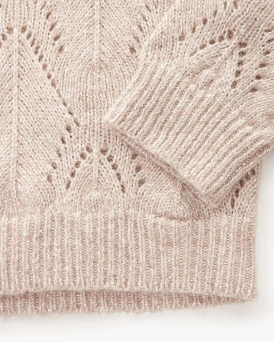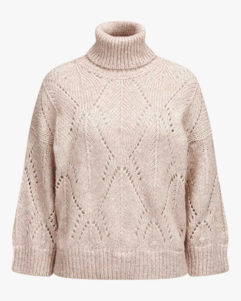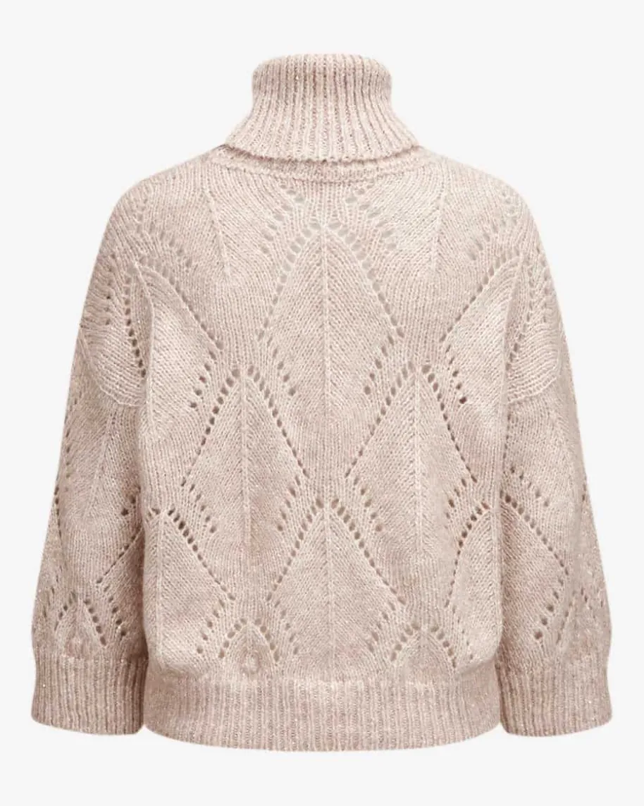 Rollkragenpullover für Damen von Peserico in Beige. Das Modell punktet sowohlmit softer Haptik, als auch dank der silbernen Lurexfäden und Pailletten mitoptischen Highlights. Die weite Passform und das Ajour-Strickmuster im Rauten-Design runden den Look modisch ab.