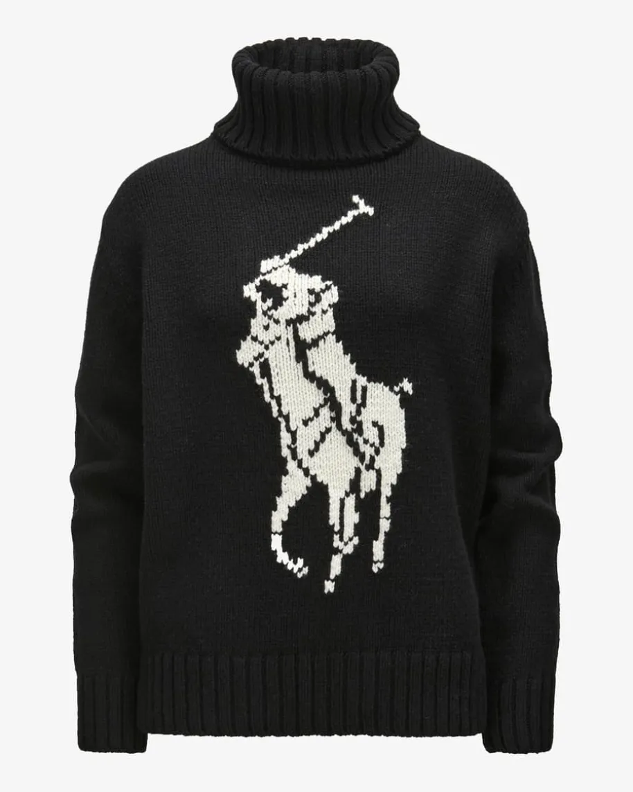Rollkragenpullover für Damen von Polo Ralph Lauren in Schwarz und Off-White.Eine Ikone des amerikanischen Lifestyles – sportlich, preppy, klassisch. Auchdieses Modell mit breitem Rollkragen präsentiert sich mit labeltypischerPoloreiter-Intarsie, während die weiche Woll-Qualität für angenehmenTragekomfort sorgt.