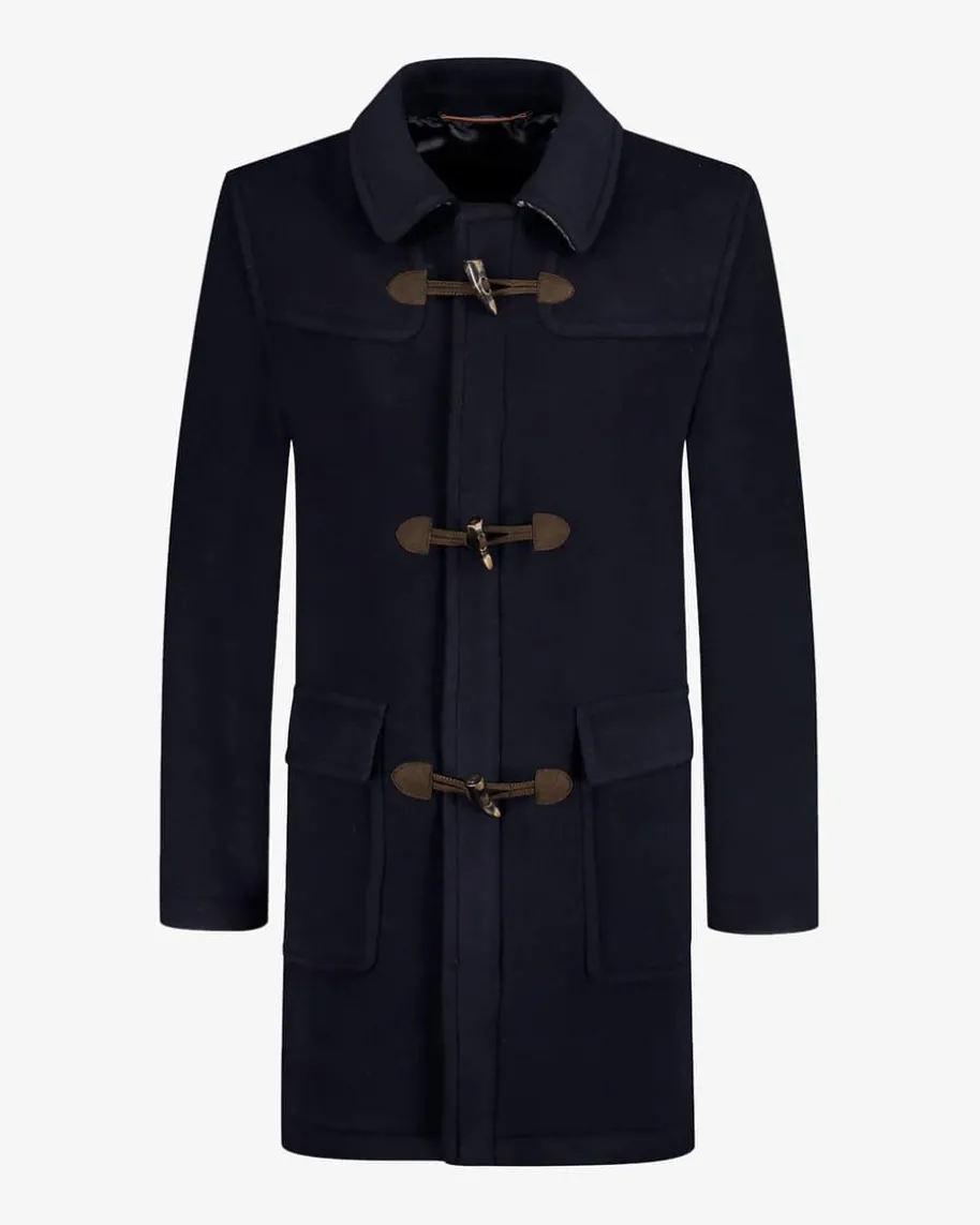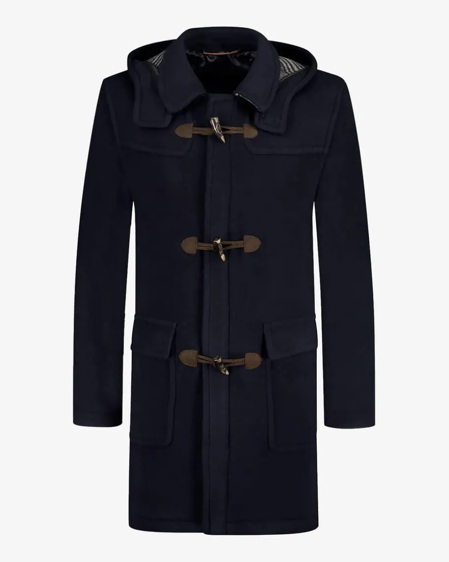 Ron Mantel für Herren von Steinbock in Navy. Das Modell zeichnet sich durch denhochwertigen Material-Mix aus, während der charakteristische Knebel-Verschlusssowie die abnehmbare Kapuze den zeitlosen Dufflecoat-Look gekonntunterstreichen.