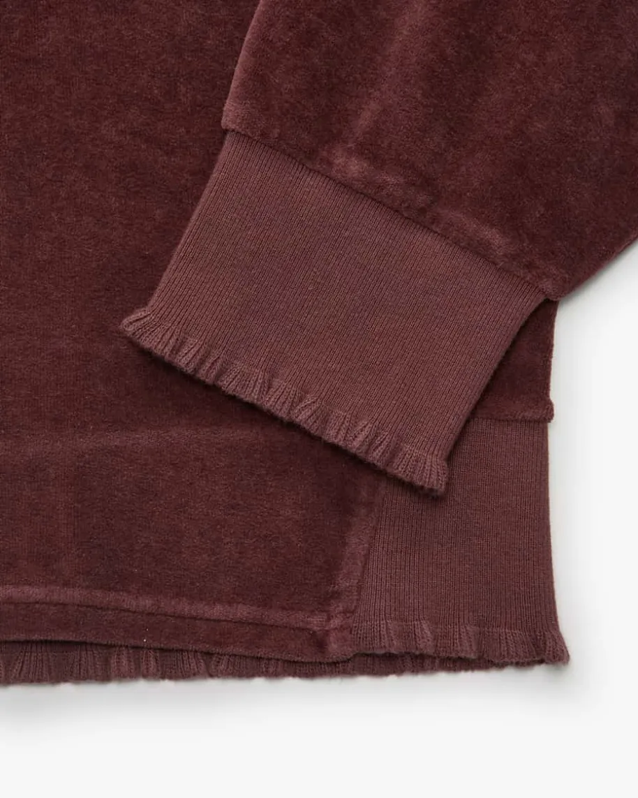 Rose Sweatshirt für Damen von Love Joy Victory in Braun. Ein modischesWohlfühl-Piece! Dank der samtigen Stoff-Qualität erhält das Modell einenkuschelig weichen und zugleich modernen Look, während die Rippstrick-Details mitzarten Rüschen optische Highlights setzen. In Kombination mit der passendenSweathose avanciert das Outfit zu einem legeren Favoriten für Zuhause.