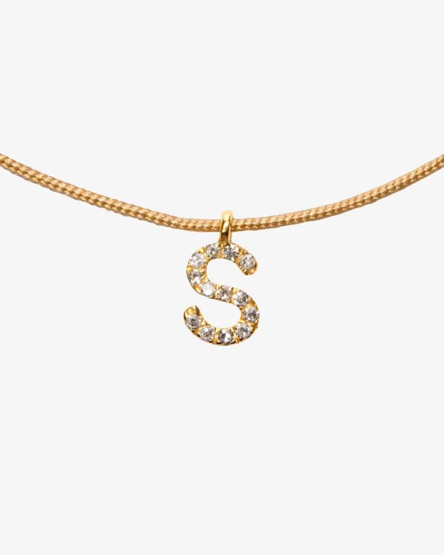 S-Glücksbändchen für Damen von Leaf in Beige und Gold. Das filigraneSchmuckstück besticht dank des diamantenbesetzten Anhängers aus Gold alsbesonderes Highlight, das sich perfekt für modische Lagen-Looks eignet.