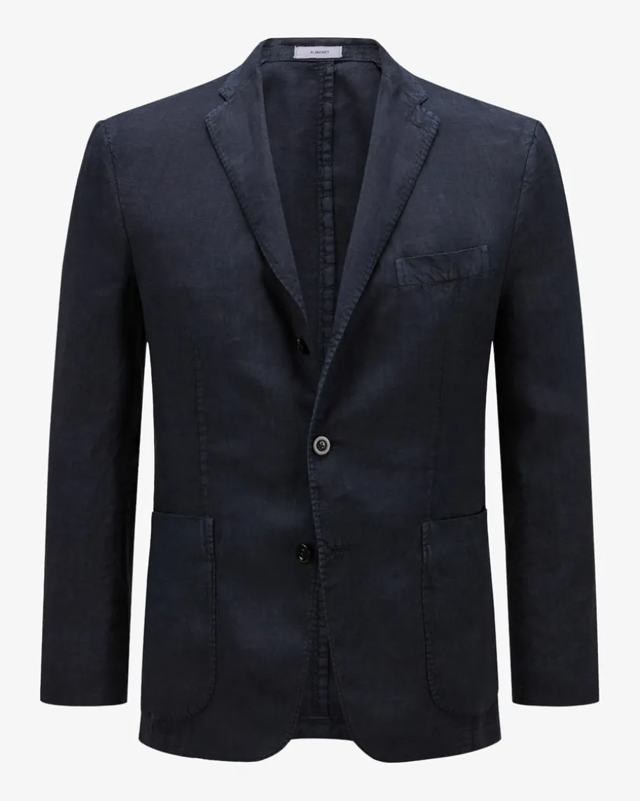 Leinen-Sakko für Herren von Boglioli in Navy. Das ungefütterte Modell ausangenehm-leichter Leinen-Qualität begeistert sowohl haptisch als auch optisch,während klassische Details den Gesamt-Look gekonnt abrunden.