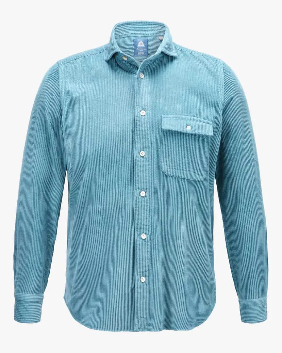 Salina Cord-Overshirt für Herren von Finamore 1925 in Türkis. DieneapolitanischeHemdenmanufaktur mit über 100 Jahren Tradition stellt handgenähte undindividuelle Mode her. Auch dieses Modell präsentiert sich mit weicher Cord-Qualität, die für angenehmen Tragekomfort sorgt. Klassische Details runden denmaskulinen Style harmonisch ab.