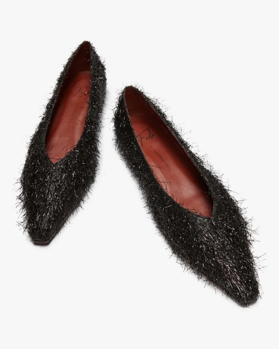 Saline Ballerinas für Damen von Festa in Schwarz. Dank der Verwendung vonchangierenden Glitzerfasern besticht das Modell in modischer Aufmachung miteinzigartigem Charme, während die spitze Form ein feminines Gesamtbild kreiert.
